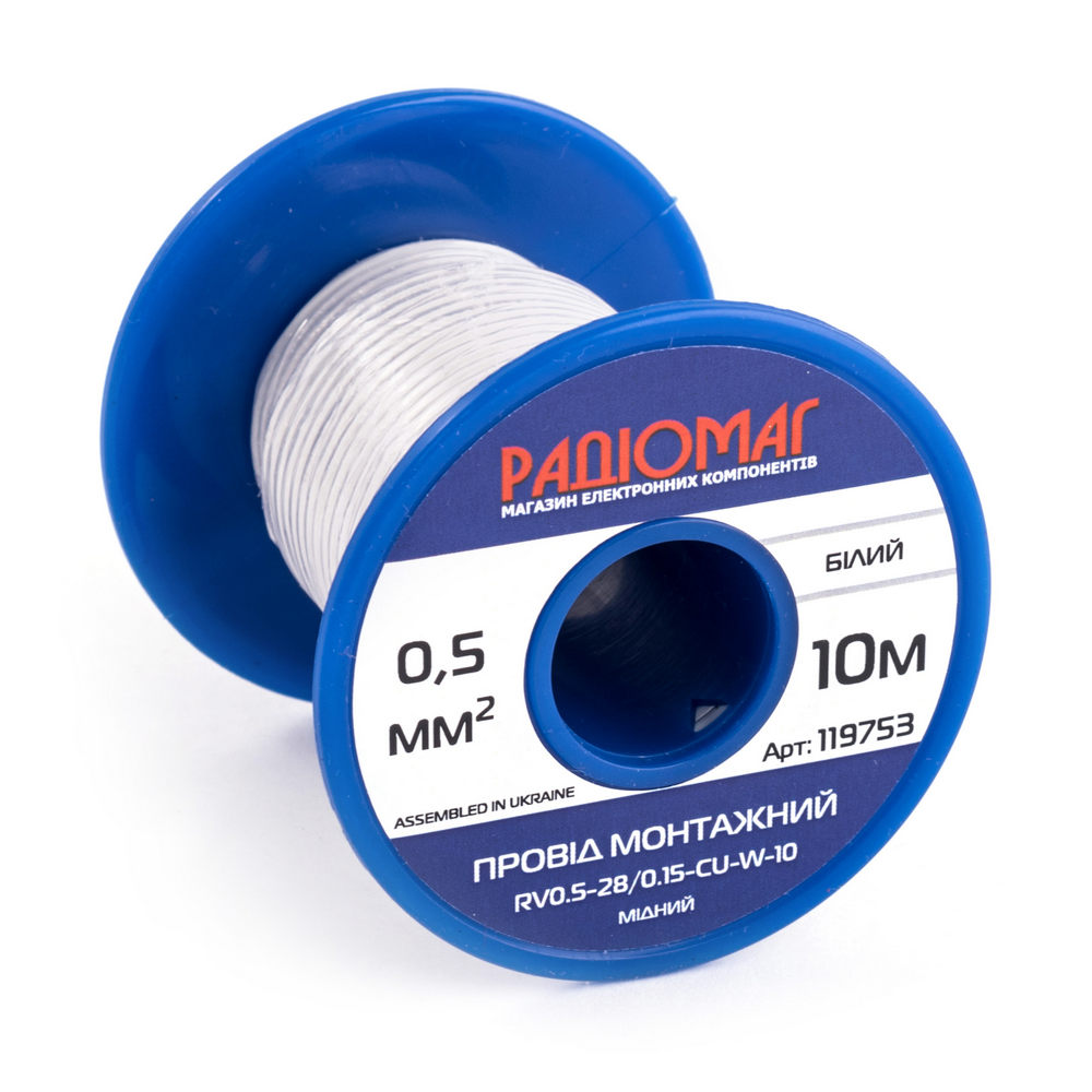 | Провід монтажний RV0.5-28/0.15-CU-W-10 на котушці Код товару: 119753