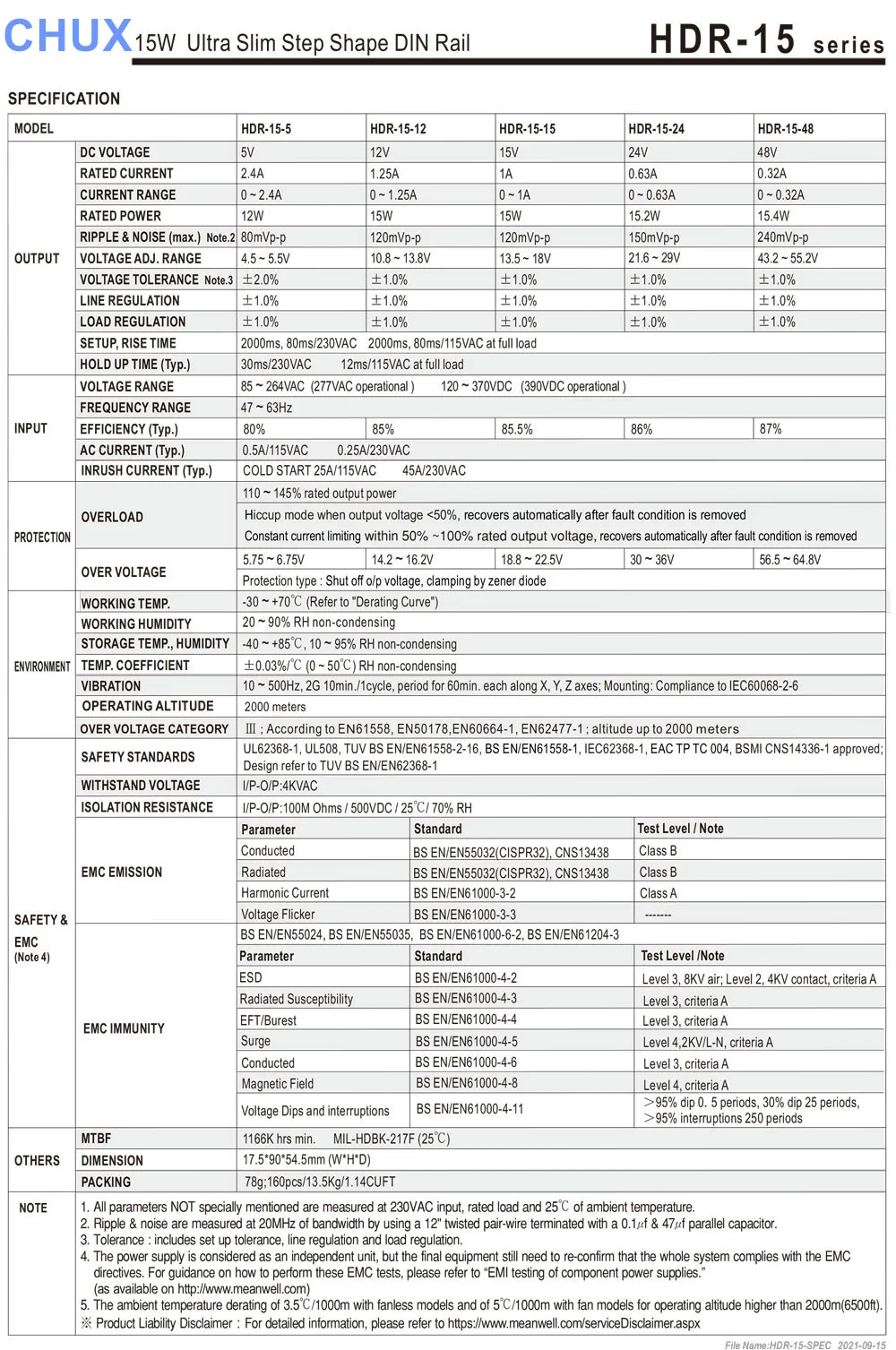 | Блок живлення на DIN-рейку 15W 5V HDR-15-5V, 15W @ 5V, CHUX Код товару: 214311