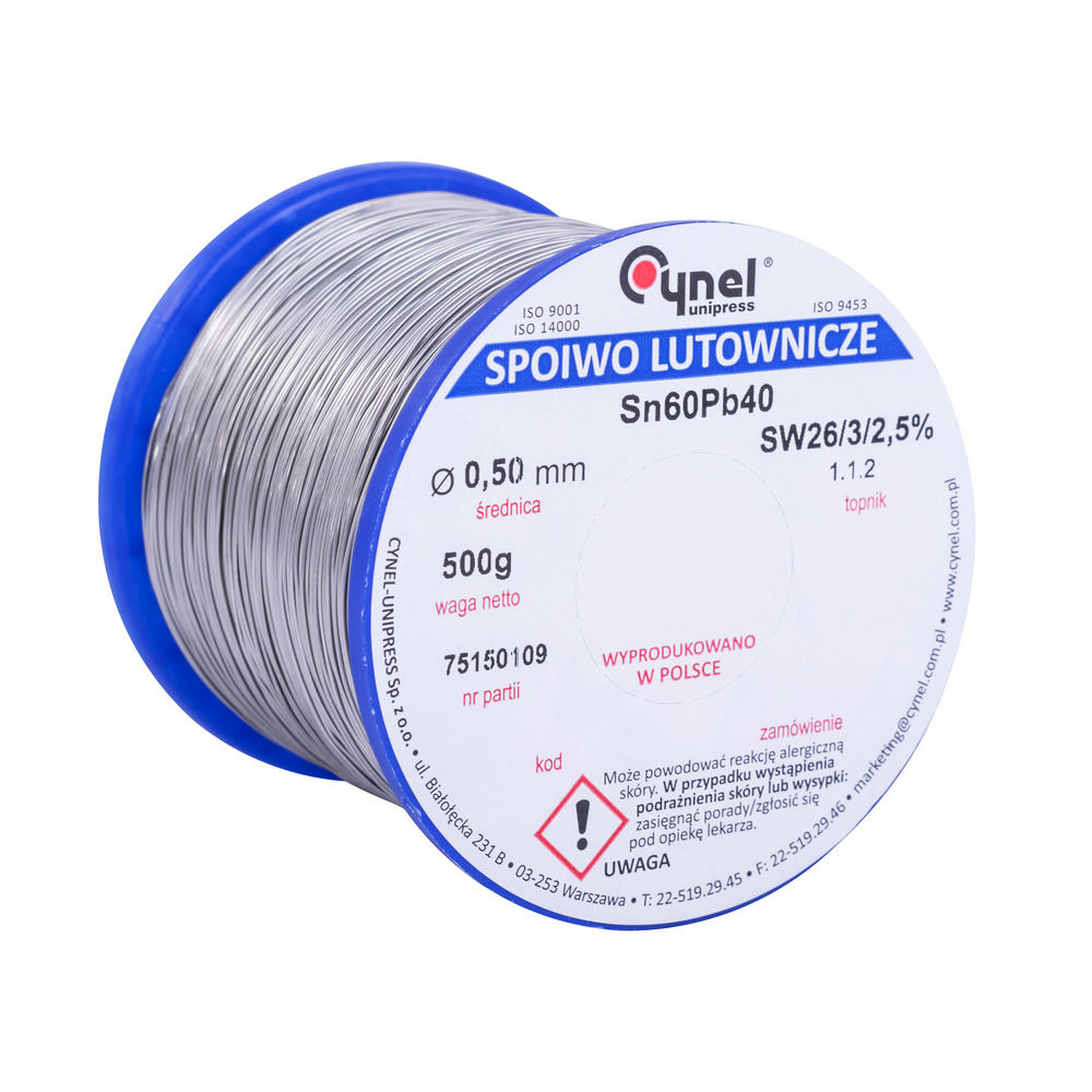 Дротяний припій, 1,5mm, 500g, з флюсом, свинцевий, CYNEL Sn60Pb40-SW26/2.5% Ø0 1.5, 500g Код товару: 142928