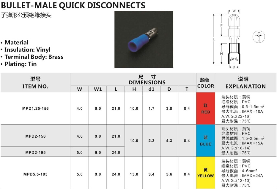 Роз'єми, клеми, з'єднувачі > КлемиОпис: Кабельний наконечник 4мм синій на провід 2,5 mm². Максимальний струм 15А Призначення: Ізольовані конектори Розріз провода та ін.розміри: 1,5-2,5 mm² Колір: синій Розмір: 4 mm Монтаж: На провід Тип наконечника: Втулковий |