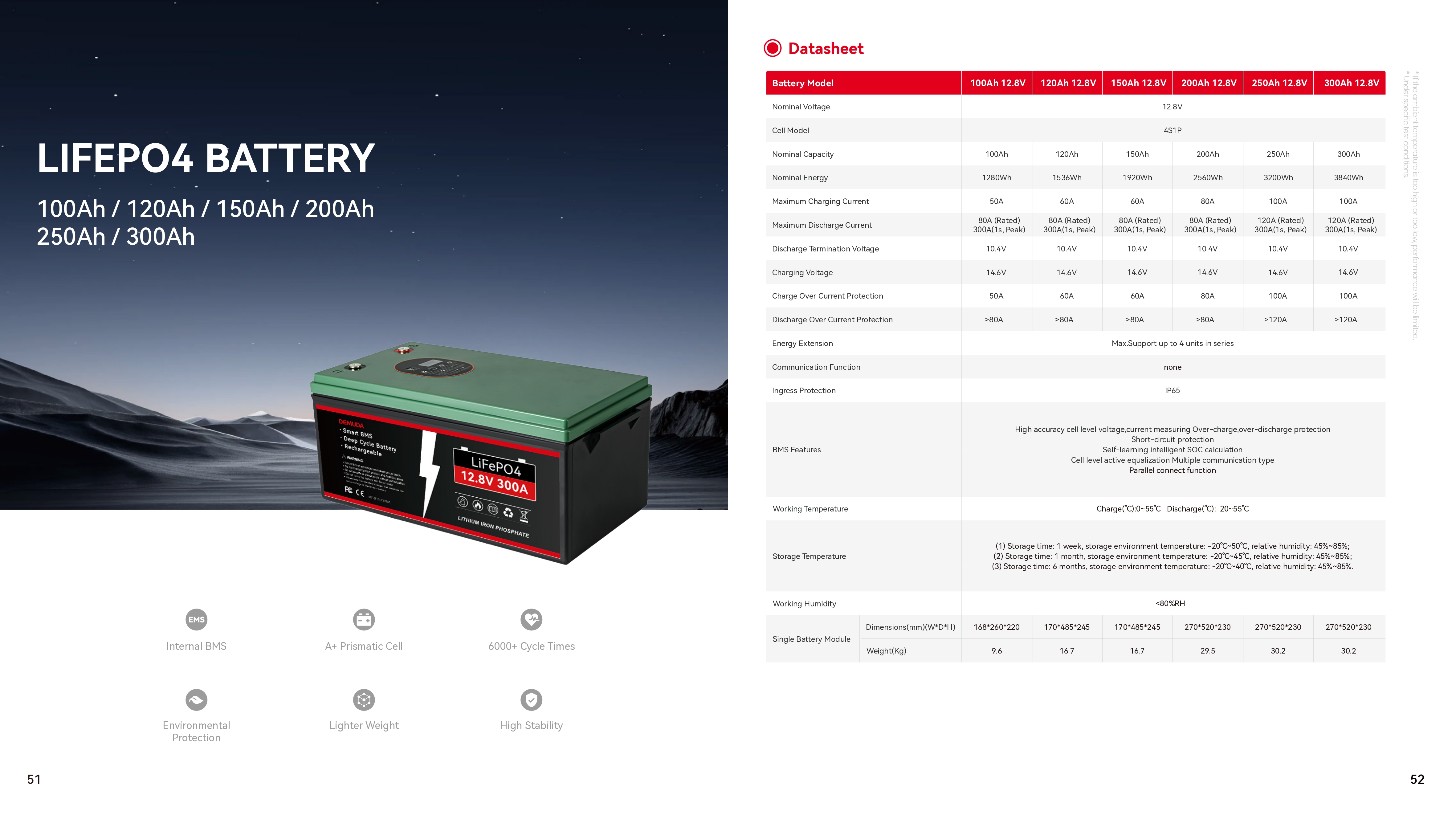 Акумулятори > LiFePo4 акумулятори Технологія: LiFePO4 Ємність: 100 Ah Форма: прямокутна Напруга, V: 51,2 V |