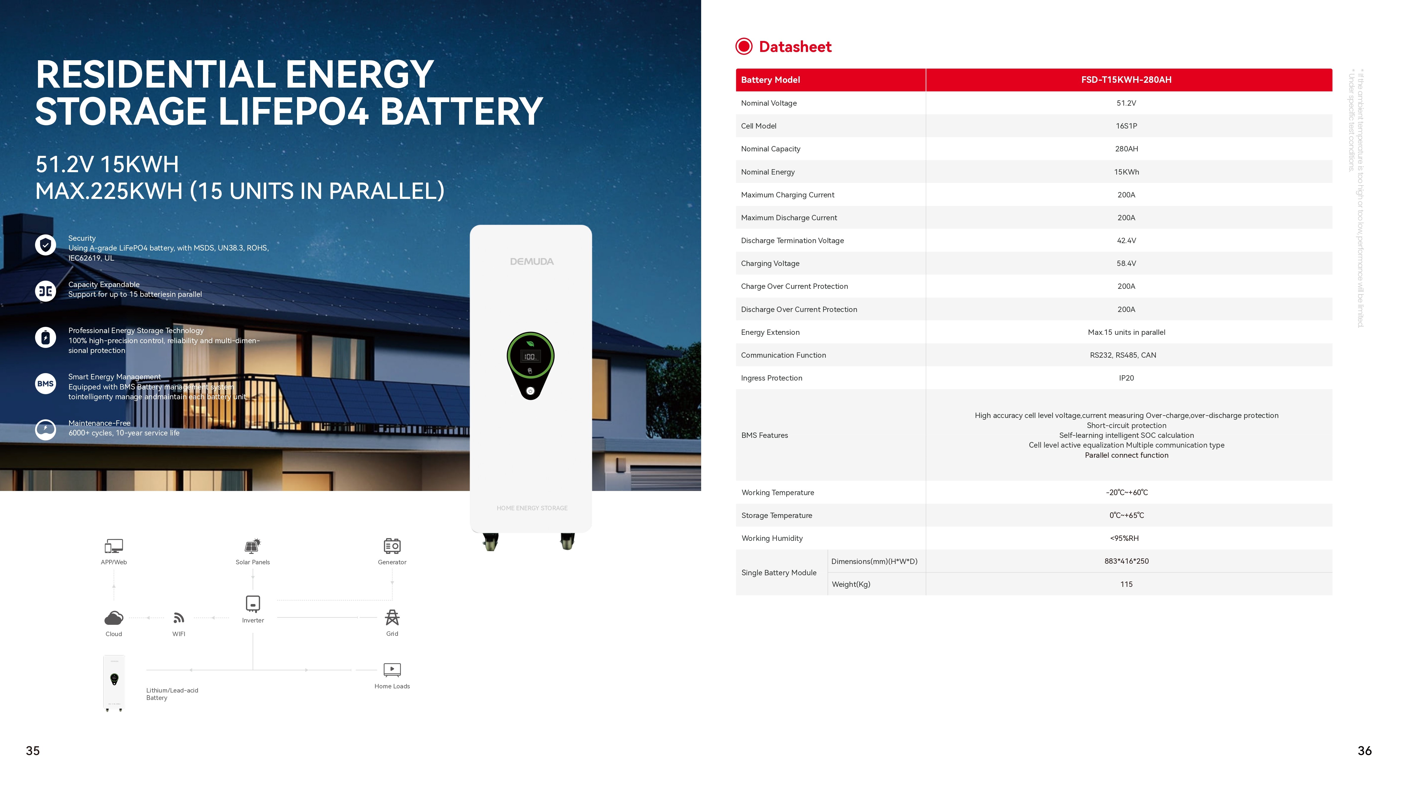 LiFePO4 100Ah, 51.2V, для монтажа на стіну, FSD-P05KWH-100AH Код товару: 216736