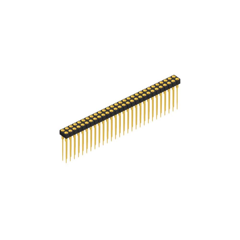 Description: pitch 1.27 x 2.54 mm; suitable fPackaging: Bulk Connector Type: Header Voltage Rating: 125VAC Current Rating (Amps): 1.5A Mounting Type: Through Hole Number of Positions: 58 Number of Rows: 2 Style: Board to Board or Cable Operating Temperature: -40°C ~ 163°C Contact Type: Male Pin Fastening Type: Push-Pull Number of Positions Loaded: All Termination: Solder Material Flammability Rating: UL94 V-0 Contact Material: Copper Zinc Insulation Color: Black Pitch - Mating: 0.050" (1.27mm) Contact Finish - Mating: Gold Contact Finish Thickness - Mating: 7.87µin (0.200µm) Contact Finish - Post: Gold Contact Shape: Square Contact Length - Post: 0.098" (2.50mm) Insulation Height: 0.067" (1.70mm) Shrouding: Unshrouded Overall Contact Length: 0.480" (12.20mm) Insulation Material: Polyamide (PA46), Nylon 4/6, Glass Filled Row Spacing - Mating: 0.100" (2.54mm) Contact Length - Mating: 0.315" (8.00mm) |
