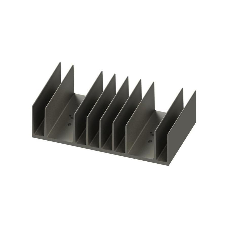 Description: Extruded HeatsinkPackaging: Bulk Material: Aluminum Length: 11.811" (300.00mm) Shape: Rectangular Type: Board Level, Extrusion Width: 11.811" (300.00mm) Power Dissipation @ Temperature Rise: 291.67W @ 105°C Thermal Resistance @ Forced Air Flow: 0.11°C/W Thermal Resistance @ Natural: 0.36°C/W Fin Height: 3.307" (84.00mm) Material Finish: Black Anodized |