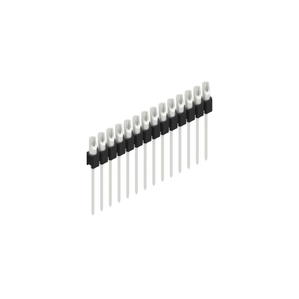 Description: Insertion side dimension "C" chaPackaging: Bulk Connector Type: Header Voltage Rating: 250VAC Current Rating (Amps): 3A Mounting Type: Through Hole Number of Positions: 14 Number of Rows: 1 Style: Board to Board or Cable Operating Temperature: -40°C ~ 163°C Contact Type: Male Pin Fastening Type: Push-Pull Number of Positions Loaded: All Termination: Solder Material Flammability Rating: UL94 V-0 Contact Material: Copper Tin Insulation Color: Black Pitch - Mating: 0.100" (2.54mm) Contact Finish - Mating: Gold Contact Finish Thickness - Mating: 7.87µin (0.200µm) Contact Finish - Post: Gold Contact Shape: Square Contact Length - Post: 0.118" (3.00mm) Insulation Height: 0.110" (2.80mm) Shrouding: Unshrouded Insulation Material: Polyamide (PA46), Nylon 4/6, Glass Filled Contact Length - Mating: 0.323" (8.20mm) |