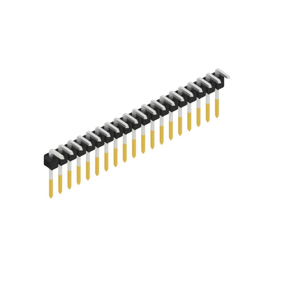 Description: Insertion side dimension "C" chaPackaging: Tube Connector Type: Header Voltage Rating: 250VAC Current Rating (Amps): 3A Mounting Type: Through Hole Number of Positions: 19 Number of Rows: 1 Style: Board to Board or Cable Operating Temperature: -40°C ~ 163°C Contact Type: Male Pin Fastening Type: Push-Pull Number of Positions Loaded: All Termination: Solder Material Flammability Rating: UL94 V-0 Contact Material: Copper Tin Insulation Color: Black Pitch - Mating: 0.100" (2.54mm) Contact Finish - Mating: Gold Contact Finish Thickness - Mating: 7.87µin (0.200µm) Contact Finish - Post: Gold Contact Shape: Square Contact Length - Post: 0.118" (3.00mm) Insulation Height: 0.110" (2.80mm) Shrouding: Unshrouded Insulation Material: Polyamide (PA46), Nylon 4/6, Glass Filled Contact Length - Mating: 0.323" (8.20mm) |