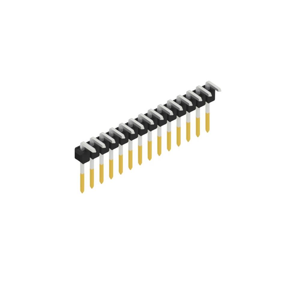 Description: INSERTION SIDE DIMENSION "C" CHAPackaging: Tube Connector Type: Header Voltage Rating: 250VAC Current Rating (Amps): 3A Mounting Type: Through Hole Number of Positions: 15 Number of Rows: 1 Style: Board to Board or Cable Operating Temperature: -40°C ~ 163°C Contact Type: Male Pin Fastening Type: Push-Pull Number of Positions Loaded: All Termination: Solder Material Flammability Rating: UL94 V-0 Contact Material: Copper Tin Insulation Color: Black Pitch - Mating: 0.100" (2.54mm) Contact Finish - Mating: Gold Contact Finish Thickness - Mating: 7.87µin (0.200µm) Contact Finish - Post: Gold Contact Shape: Square Contact Length - Post: 0.118" (3.00mm) Insulation Height: 0.110" (2.80mm) Shrouding: Unshrouded Insulation Material: Polyamide (PA46), Nylon 4/6, Glass Filled Contact Length - Mating: 0.323" (8.20mm) |