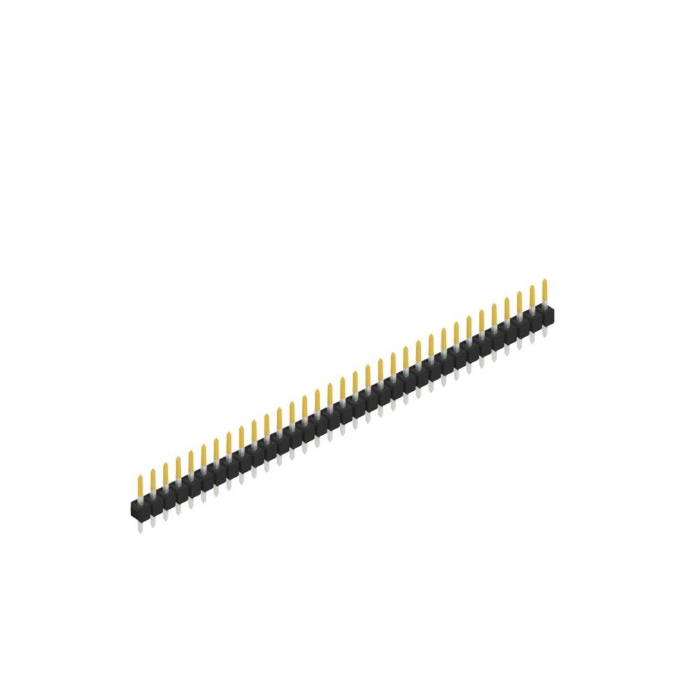 Description: Insertion side dimension "C" chaPackaging: Bulk Connector Type: Header Voltage Rating: 250VAC Current Rating (Amps): 3A Mounting Type: Through Hole Number of Positions: 34 Number of Rows: 1 Style: Board to Board or Cable Operating Temperature: -40°C ~ 163°C Contact Type: Male Pin Fastening Type: Push-Pull Number of Positions Loaded: All Termination: Solder Material Flammability Rating: UL94 V-0 Contact Material: Copper Tin Insulation Color: Black Pitch - Mating: 0.100" (2.54mm) Contact Finish - Mating: Gold Contact Finish Thickness - Mating: 7.87µin (0.200µm) Contact Finish - Post: Gold Contact Shape: Square Contact Length - Post: 0.118" (3.00mm) Insulation Height: 0.110" (2.80mm) Shrouding: Unshrouded Insulation Material: Polyamide (PA46), Nylon 4/6, Glass Filled Contact Length - Mating: 0.323" (8.20mm) |
