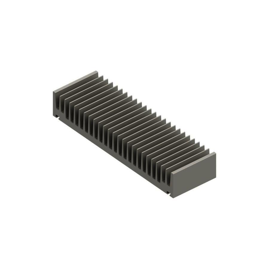 Description: Extruded HeatsinkPackaging: Bulk Material: Aluminum Length: 39.370" (1000.00mm) Shape: Rectangular Type: Board Level, Extrusion Width: 0.602" (15.30mm) Power Dissipation @ Temperature Rise: 3.48W @ 80°C Thermal Resistance @ Forced Air Flow: 6.48°C/W Thermal Resistance @ Natural: 22.99°C/W Fin Height: 0.315" (8.00mm) Material Finish: Natural Anodized |