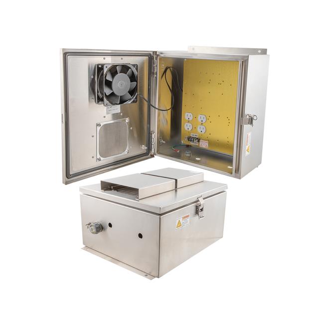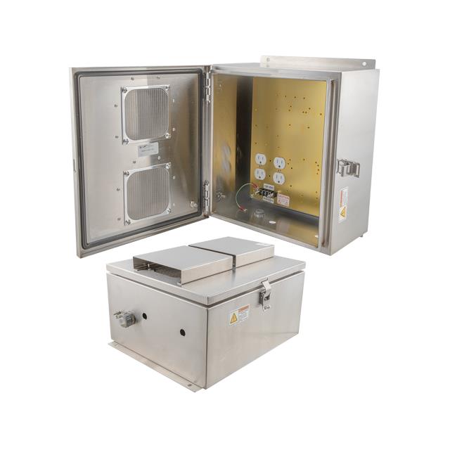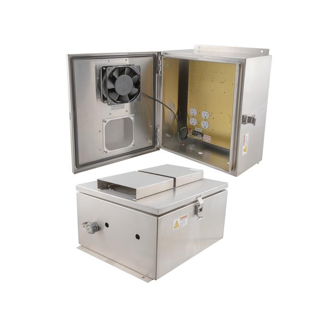 Description: ENCL SS 14X12X07" W/SS FAN & HEA Packaging: Bag Color: Gray Size / Dimension: 14.500" L x 13.000" W (368.30mm x 330.20mm) Material: Metal, Stainless Steel Height: 7.830" (198.88mm) Design: Hinged Door Ratings: IP24, NEMA 3R Container Type: Enclosure Area (L x W): 189in² (1220cm²) |