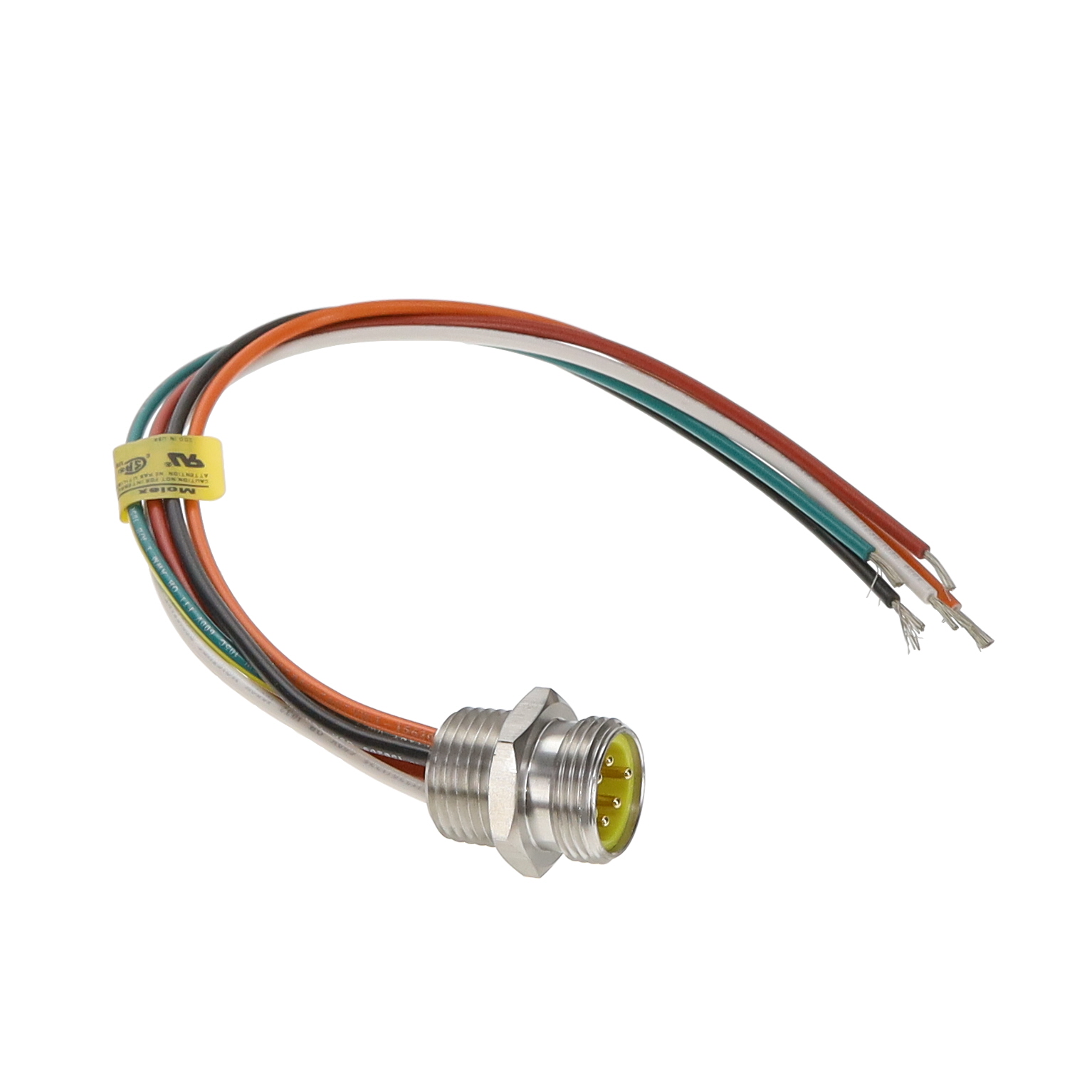 Description: CIRC CBL 5POS RCPT TO WIRE 1'Packaging: Bag Color: Multiple Length: 1.00' (304.80mm) Shielding: Unshielded Cable Type: Individual Usage: Industrial Environments Ingress Protection: IP67 - Dust Tight, Waterproof Part Status: Active 1st Connector Number of Positions Loaded: All 1st Connector Gender: Male Pins 1st Connector Shell Size - Insert: 1/2" 1st Connector Orientation: Keyed 1st Connector Mounting Type: Panel Mount 1st Connector Type: Receptacle 2nd Connector Type: Wire Leads Assembly Configuration: Standard Cable Material: Polyvinyl Chloride (PVC) 1st Connector Number of Positions: 5 |