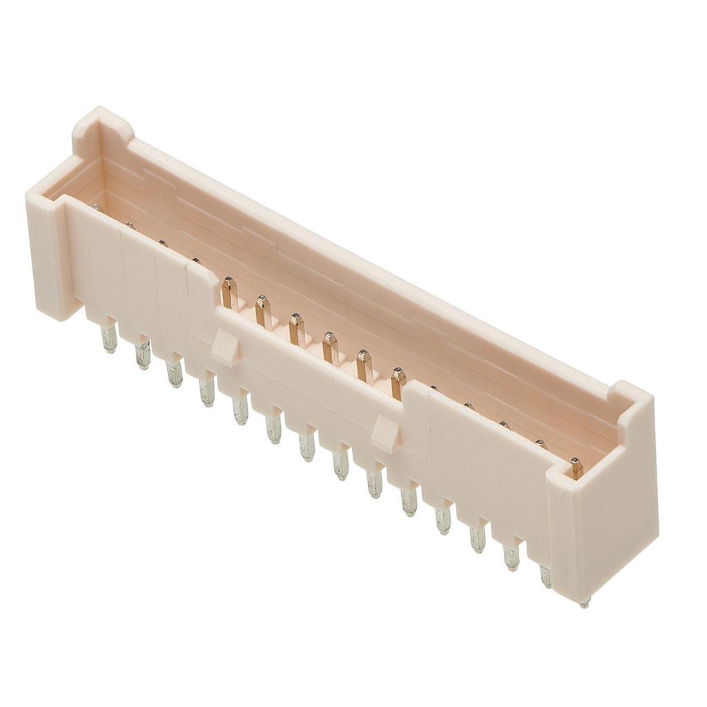 Description: CONN HEADER SMD 14POS 1.5MMPackaging: Cut Tape (CT) Connector Type: Header Mounting Type: Surface Mount Number of Positions: 14 Number of Rows: 1 Style: Board to Cable/Wire Contact Type: Male Pin Fastening Type: Push-Pull Number of Positions Loaded: All Termination: Solder Material Flammability Rating: UL94 V-0 Contact Material: Brass Alloy Insulation Color: Beige Pitch - Mating: 0.059" (1.50mm) Contact Finish - Mating: Tin Contact Finish Thickness - Mating: 100.0µin (2.54µm) Contact Finish - Post: Tin Part Status: Active Contact Shape: Square Insulation Height: 0.199" (5.05mm) Shrouding: Shrouded - 4 Wall Insulation Material: Polyamide (PA), Nylon Contact Length - Mating: 0.106" (2.70mm) |