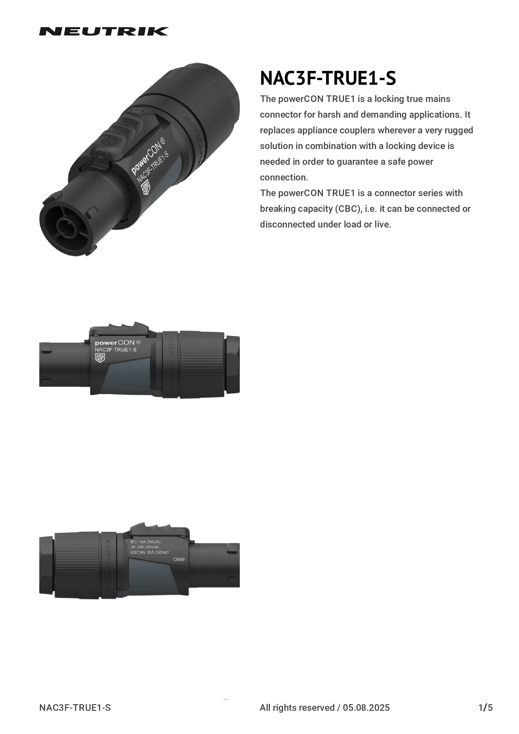 NAC3F-TRUE1-S | Neutrik Americas, Inc. |