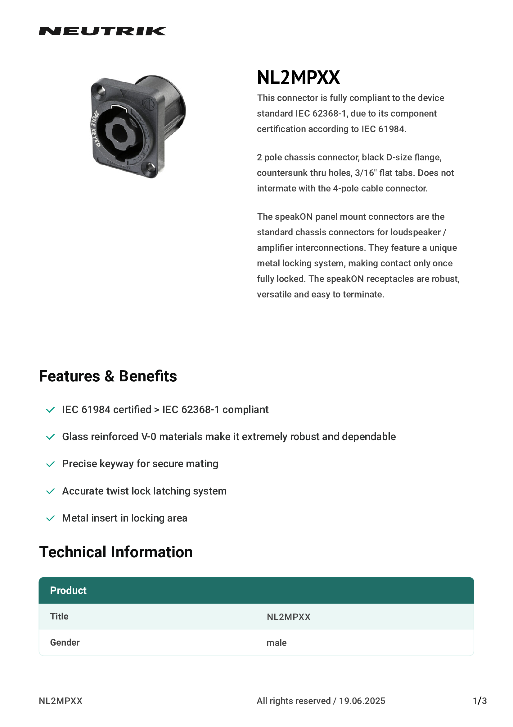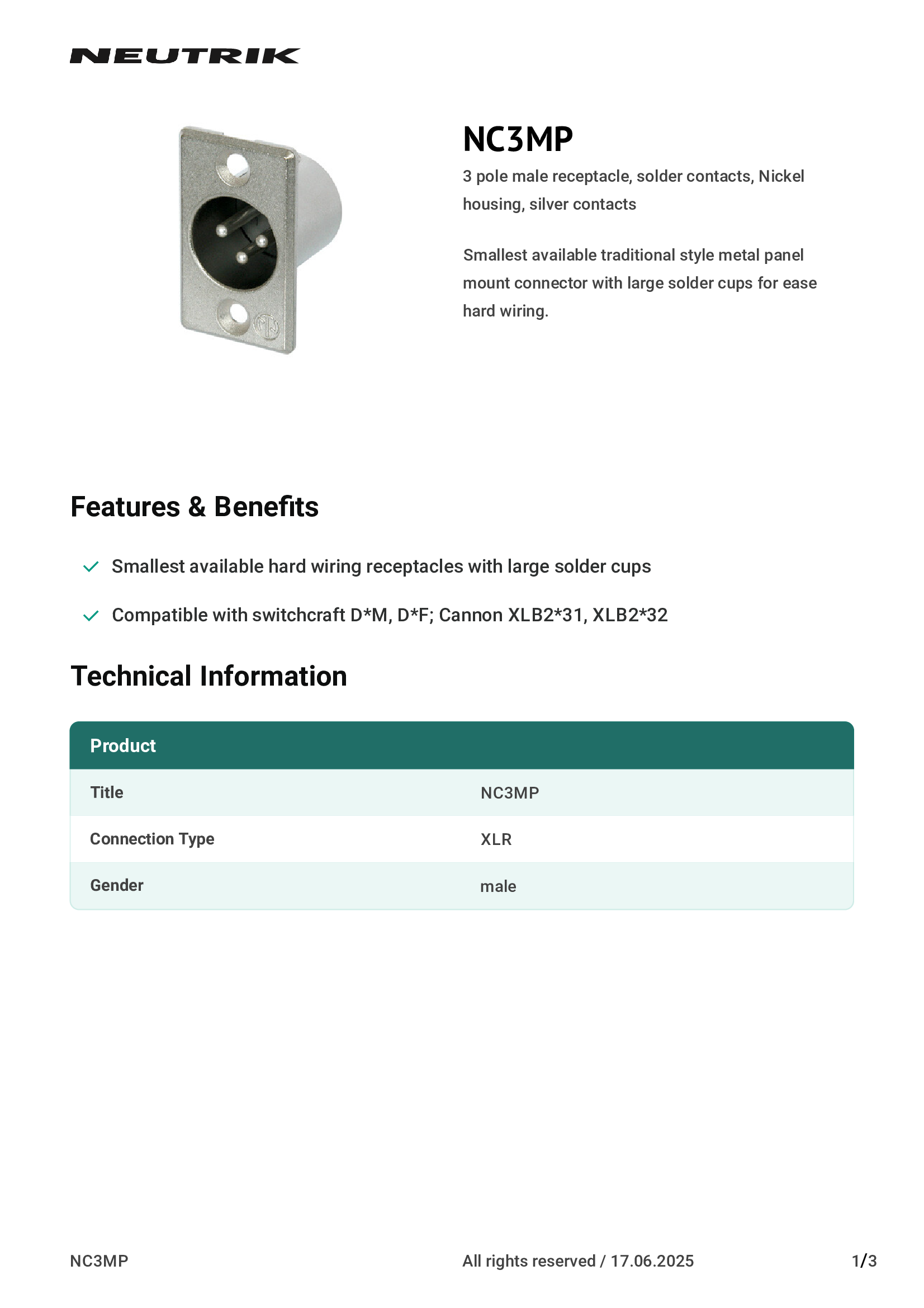 | NC3MP | Neutrik Americas, Inc. |