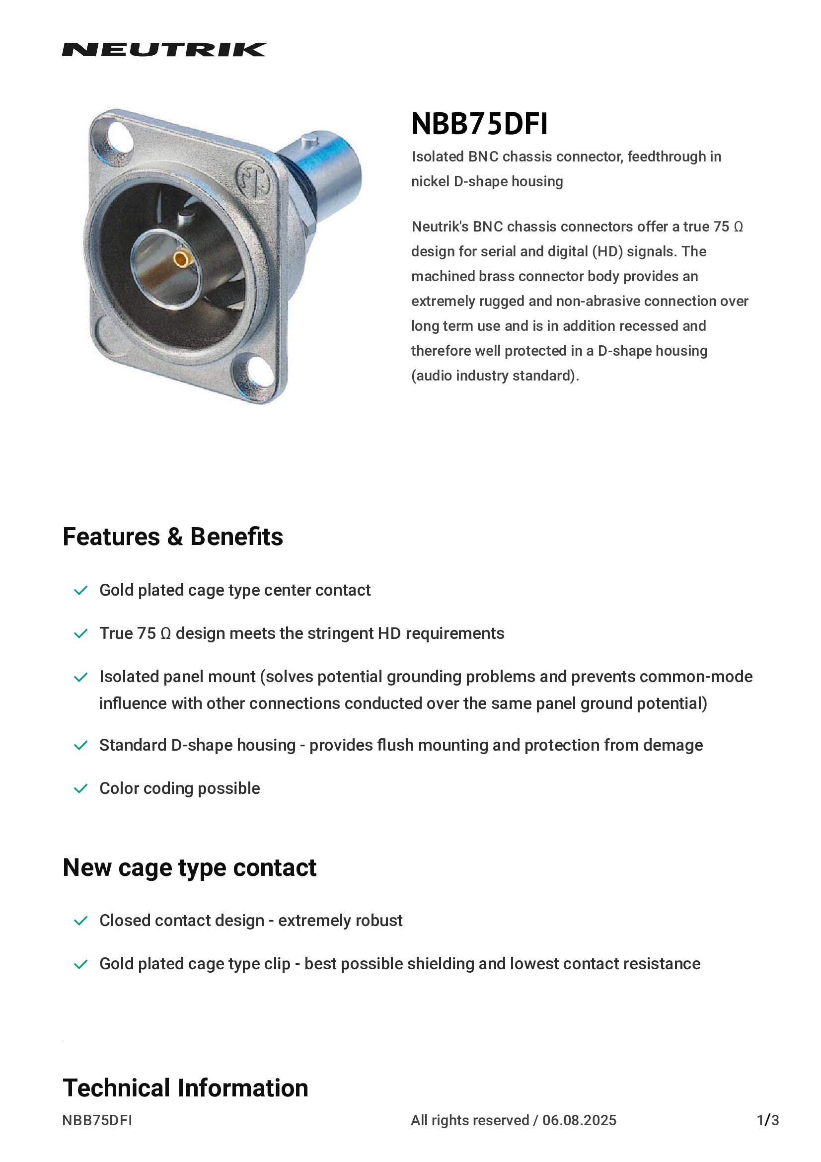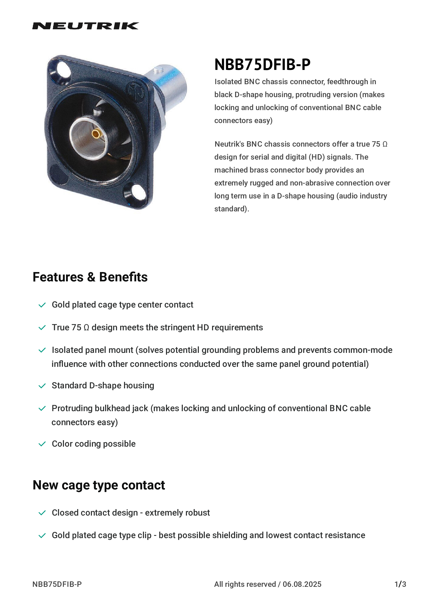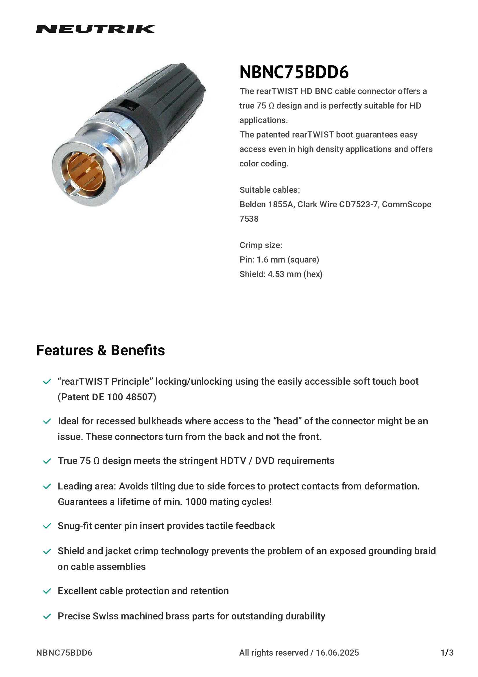 | NBNC75BDD6 | Neutrik Americas, Inc. |