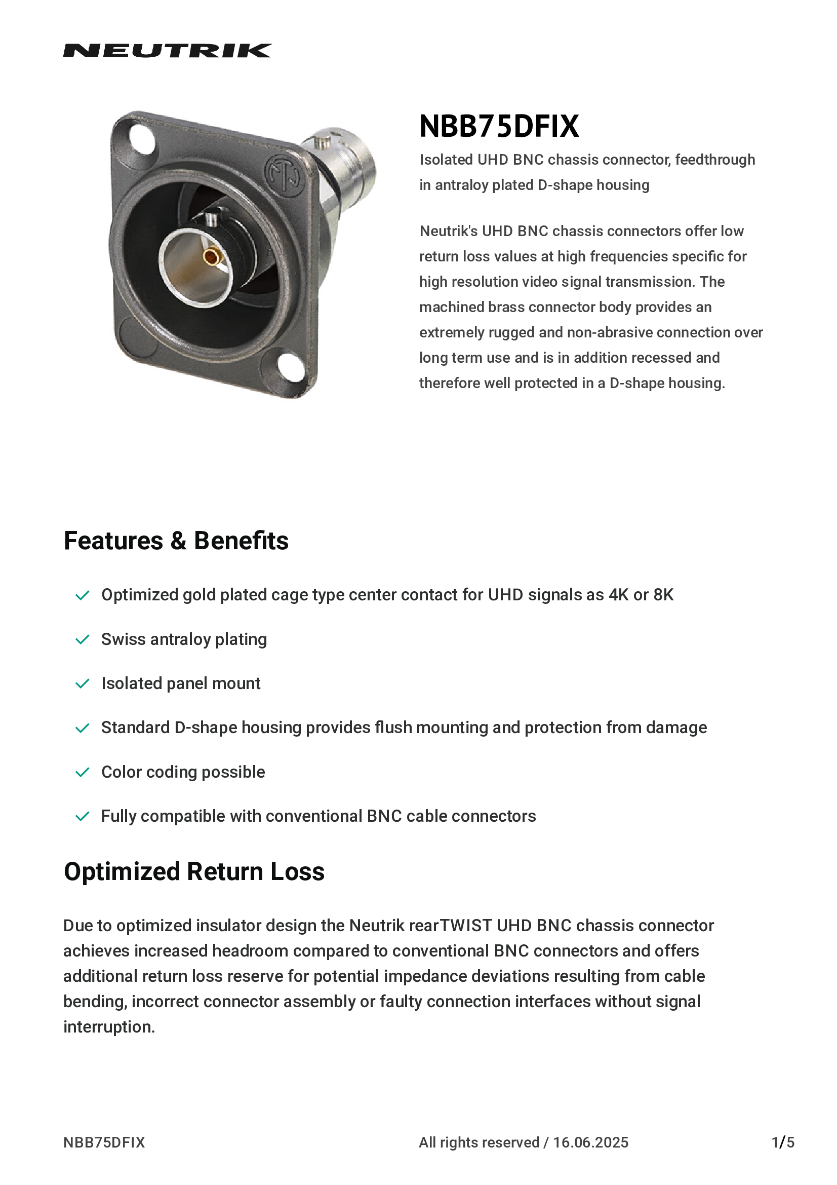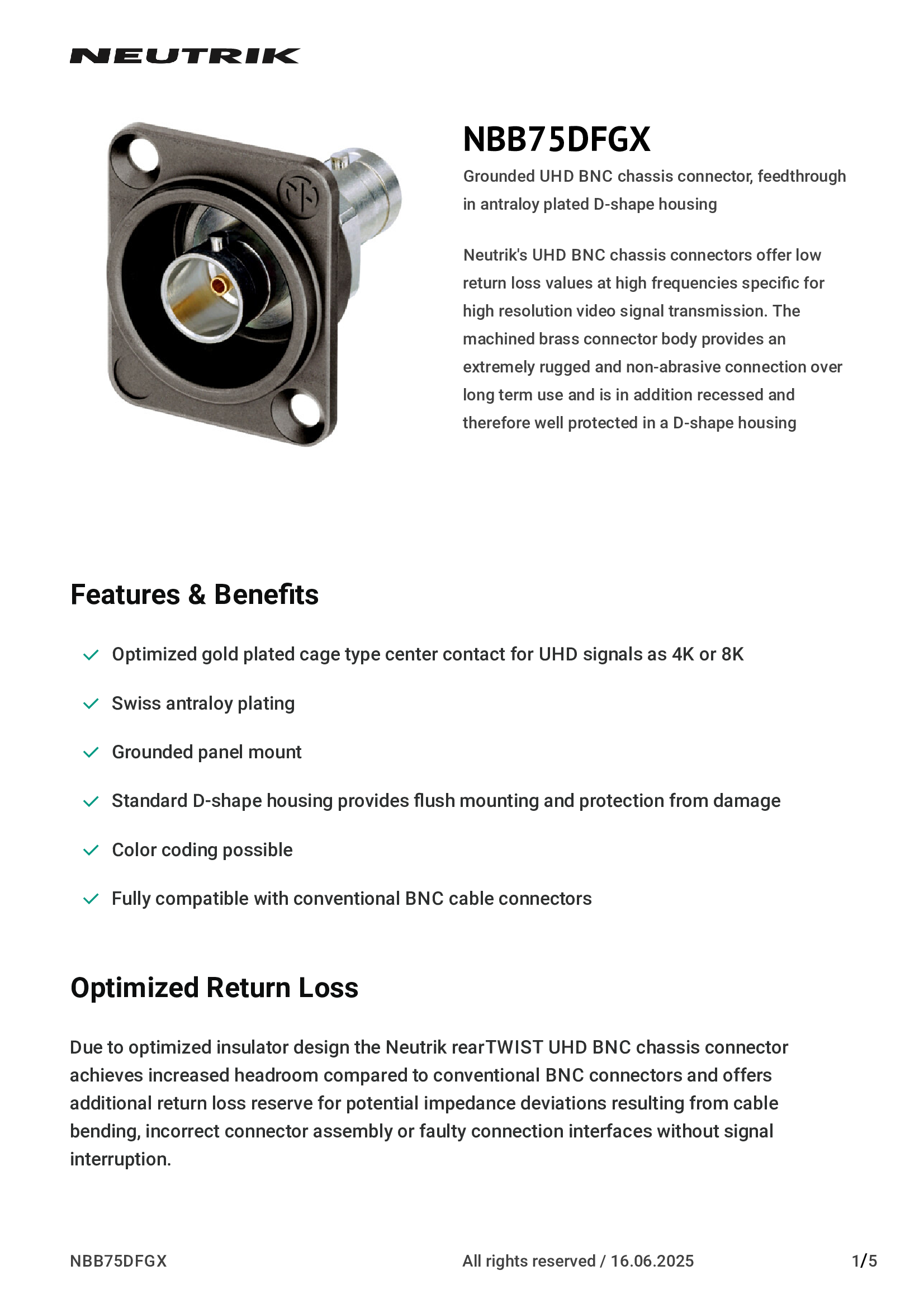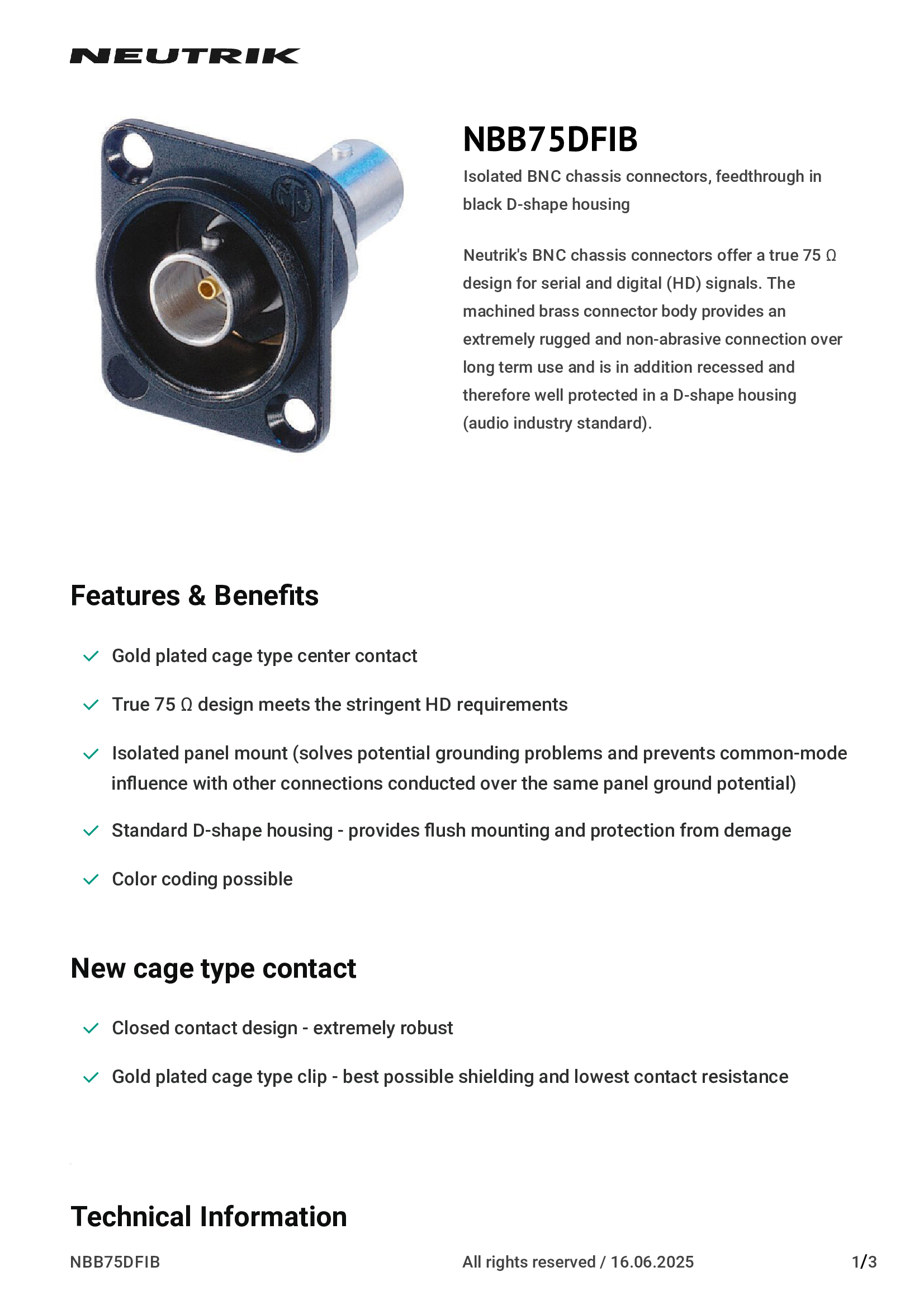 | NBNC75BDD6 | Neutrik Americas, Inc. |