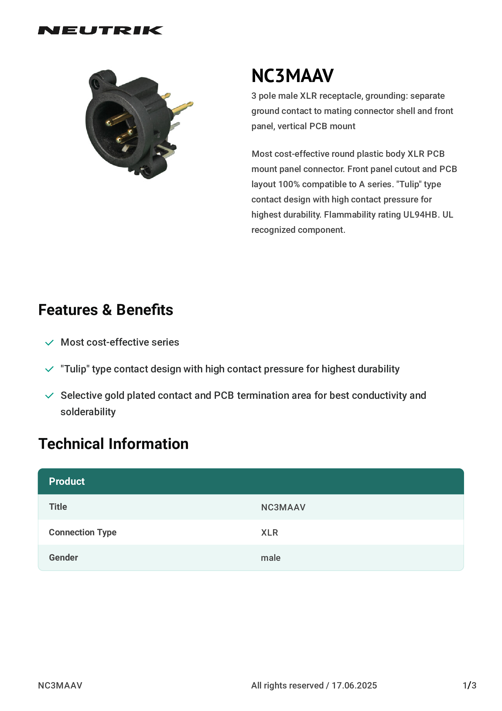 | NC3MAAV | Neutrik Americas, Inc. |