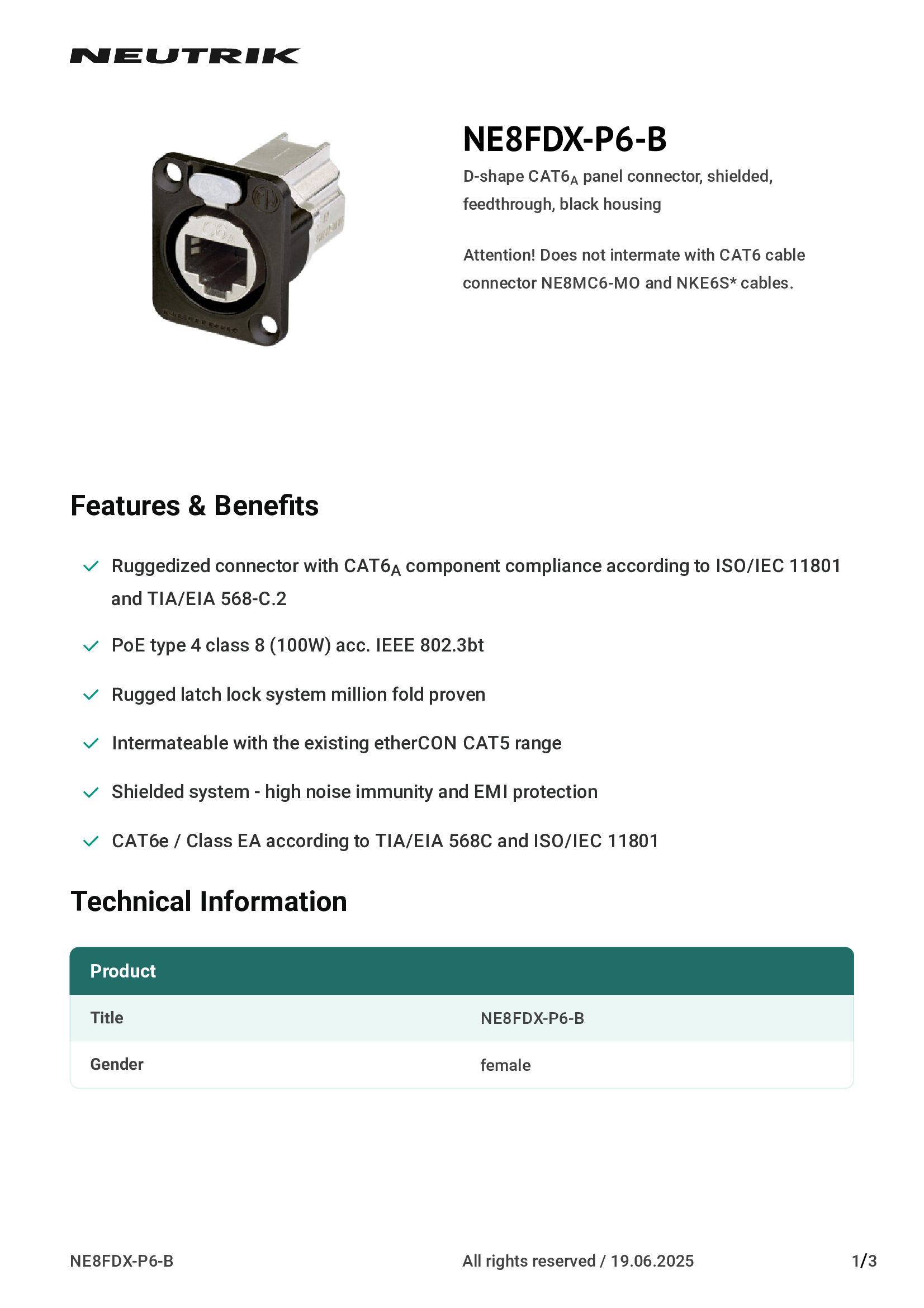 NE8FDX-P6-B | Neutrik Americas, Inc. |