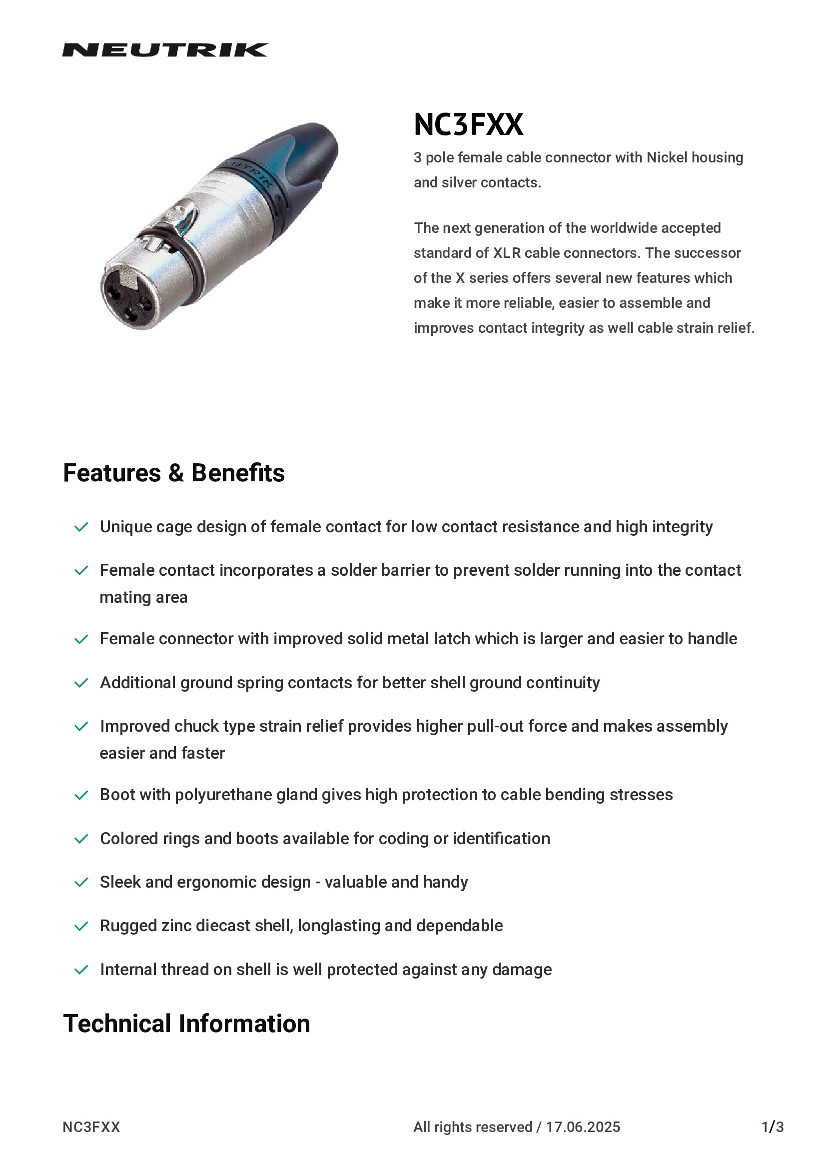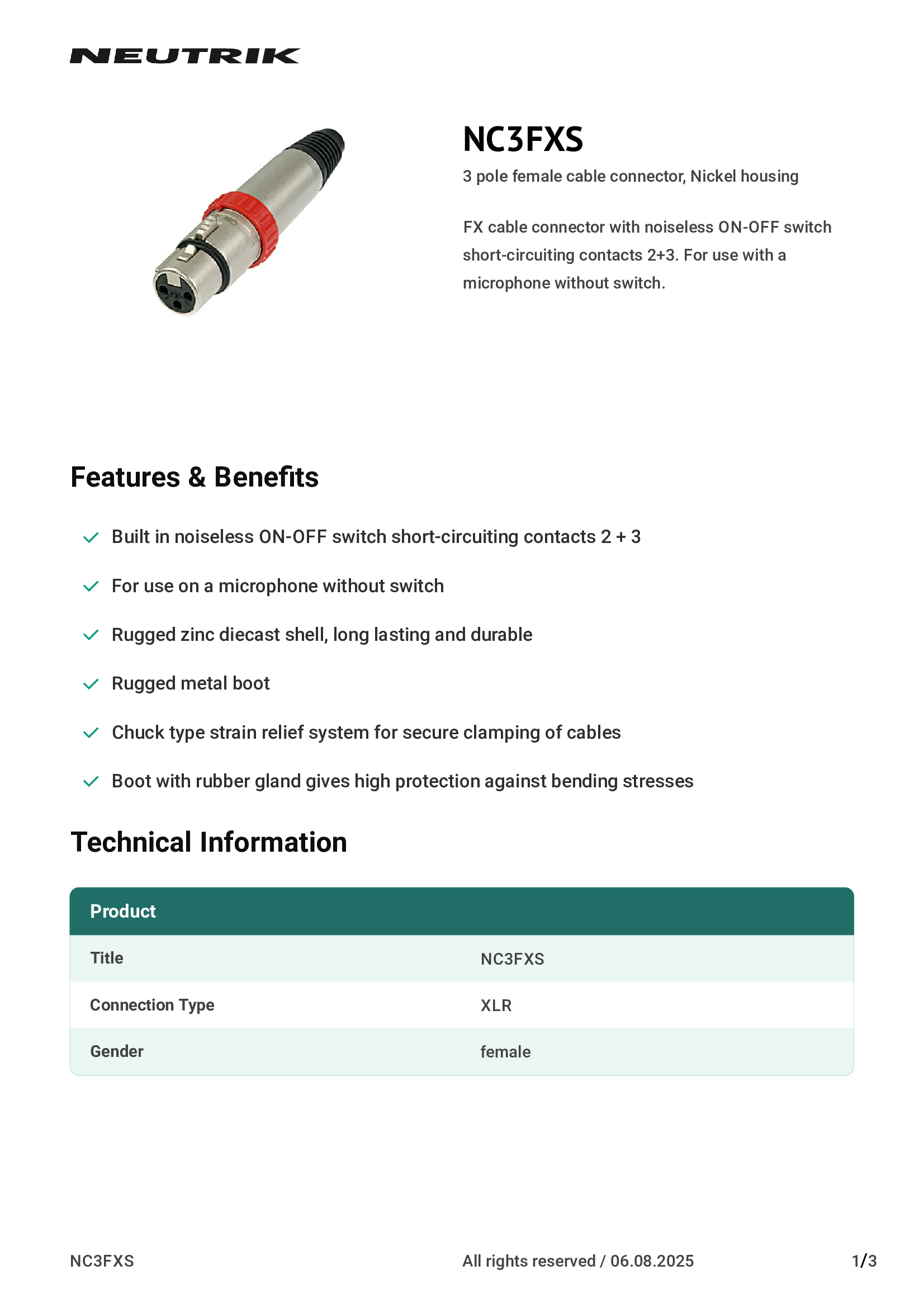 NC3FXX | Neutrik Americas, Inc. |