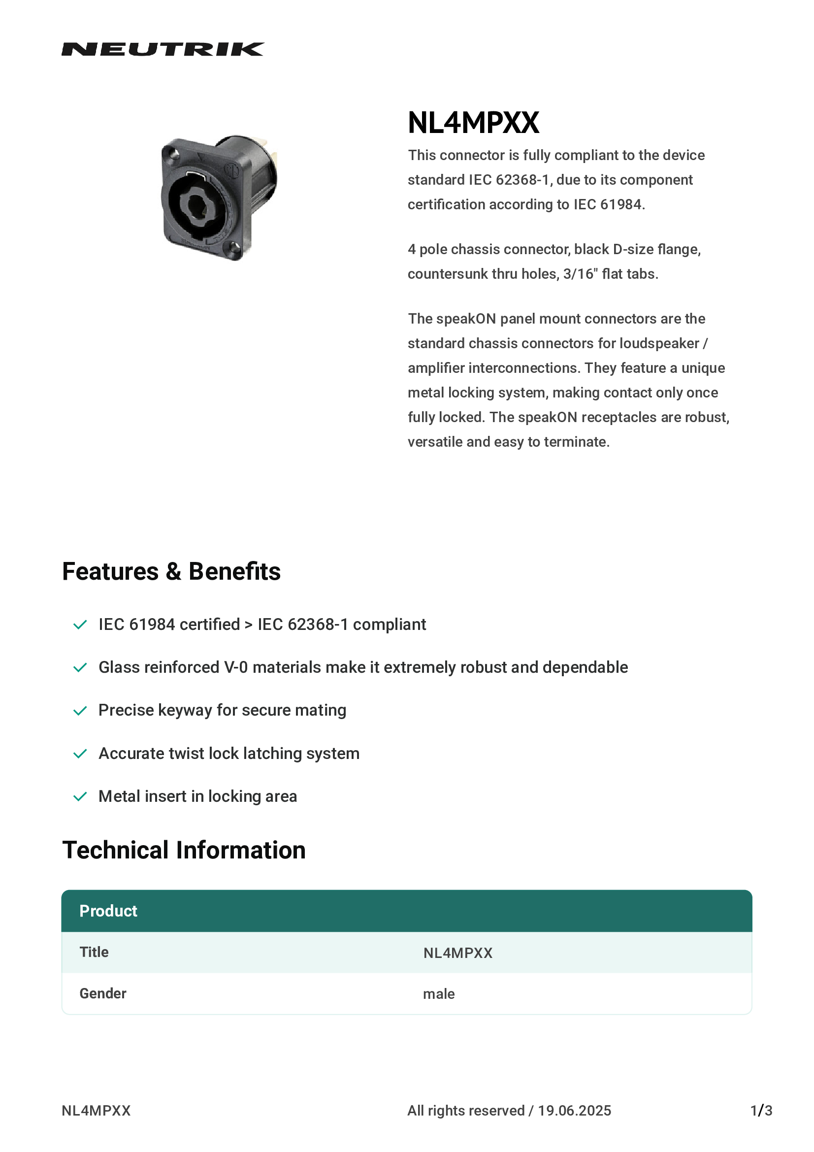 | NC3MPP | Neutrik Americas, Inc. |