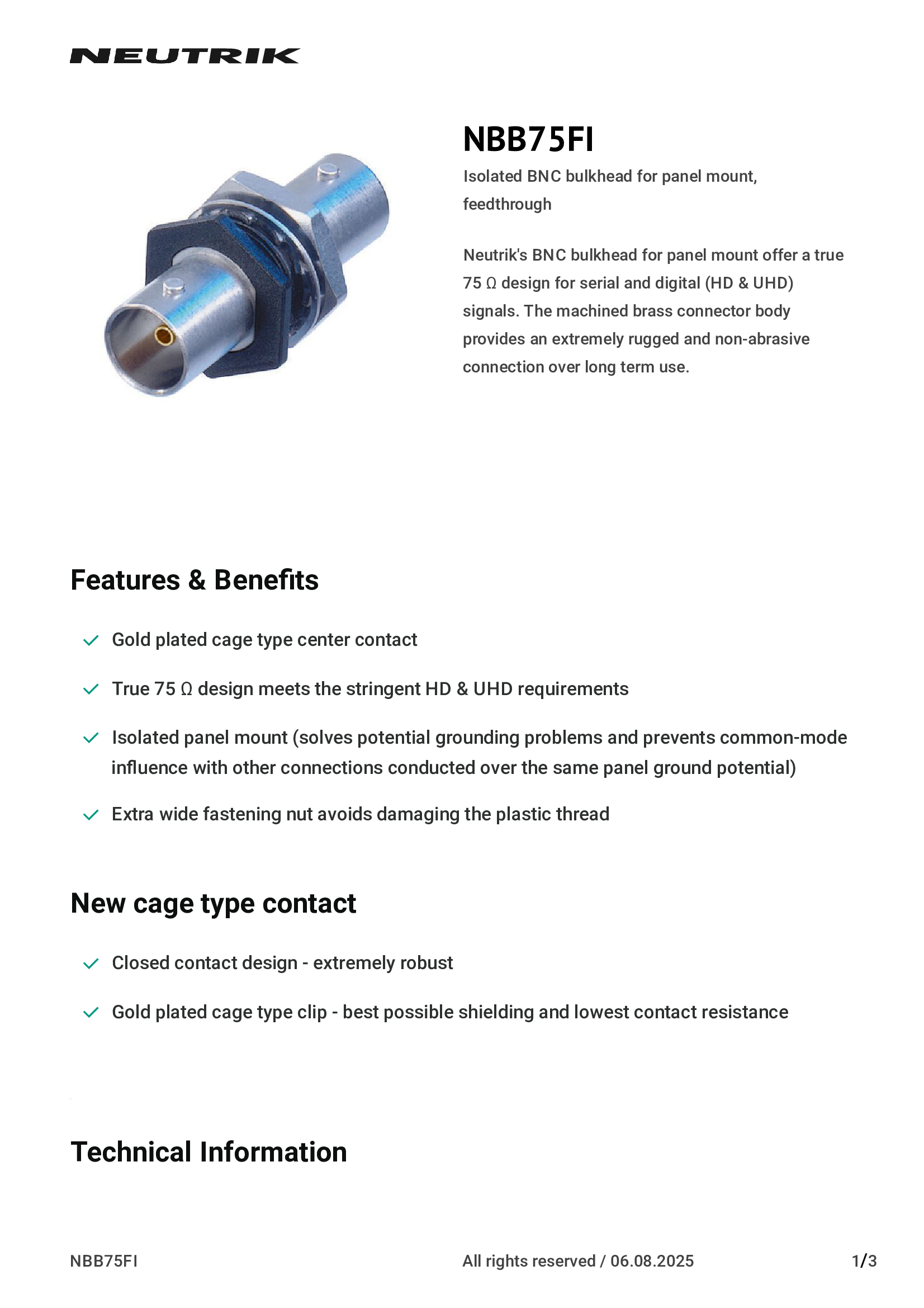 | NBB75FI | Neutrik Americas, Inc. |
