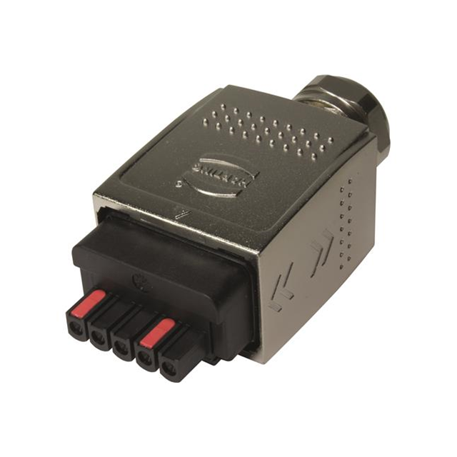 Description: HAN PUSHPULL POWER L 4/0 METAL H, Packaging: Bulk, Connector Type: Plug, Contact Finish: Gold, Color: Black, Mounting Type: Free Hanging (In-Line), Number of Positions: 5, Contact Type: Female Socket, Fastening Type: Push-Pull, Wire Type: Discrete, Cable Termination: Spring Clamp, Number of Rows: 1.