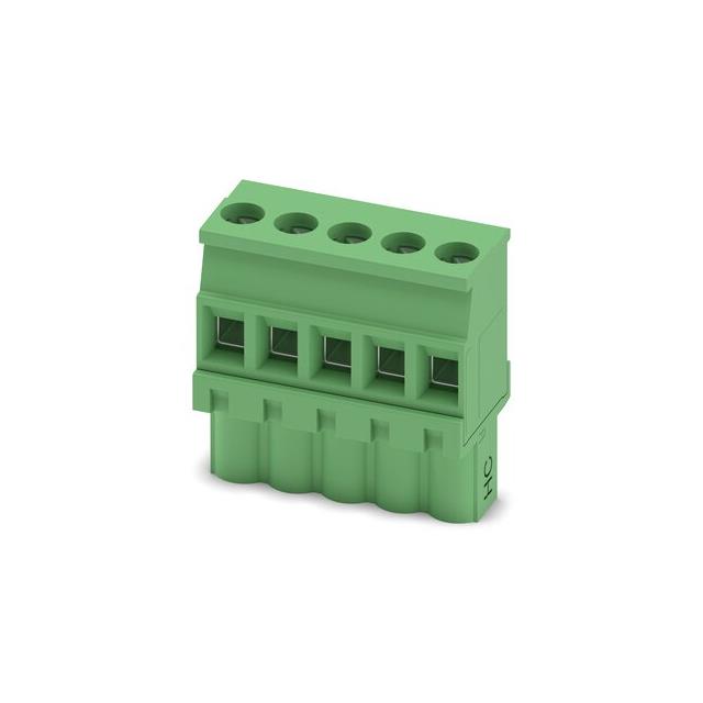 Description: TERM BLOCK PLUG 5POS 5.08MM, Packaging: Bulk, Features: Retention Latches (Non-Wire Side), Color: Green, Mounting Type: Free Hanging (In-Line), Number of Positions: 5, Pitch: 0.200" (5.08mm), Type: Plug, Female Sockets, Termination Style: Screw - Rising Cage Clamp, Current - IEC: 16A, Number of Levels: 1, Wire Gauge or Range - AWG: 12-30 AWG, Wire Gauge or Range - mm²: 0.2-2.5mm², Positions Per Level: 5, Plug Wire Entry: 270°, Contact Mating Finish: Tin, Current - UL: 16 A, Voltage - IEC: 630 V, Voltage - UL: 300 V.