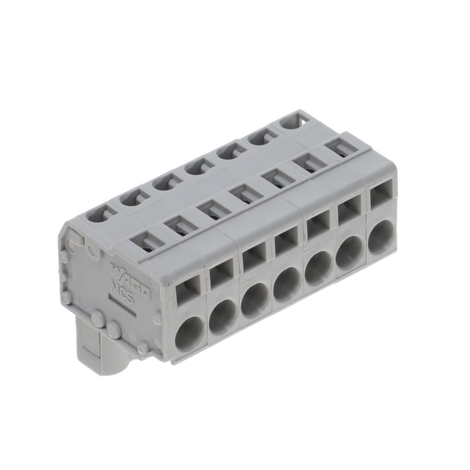 Description: 1-CONDUCTOR FEMALE PLUG; ANGLED;, Features: Retention Latches (Non-Wire Side), Packaging: Box, Color: Gray, Mounting Type: Free Hanging (In-Line), Number of Positions: 7, Pitch: 0.197" (5.00mm), Type: Plug, Female Sockets, Operating Temperature: -60°C ~ 85°C, Termination Style: Screwless - Leg Spring, Push-In Spring, Current - IEC: 14A, Number of Levels: 1, Wire Gauge or Range - AWG: 12-28 AWG, Wire Gauge or Range - mm²: 0.08-2.5mm², Positions Per Level: 7, Plug Wire Entry: 270°, Contact Mating Finish: Tin, Current - UL: 15 A, Voltage - IEC: 630 V, Voltage - UL: 600 V.