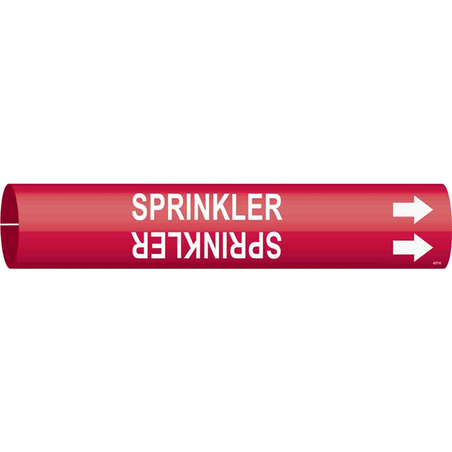 Description: B915 STYLE D 12X21 WHITE/RED, Packaging: Bulk, Color: White Legend, Red Background, Material: Plastic, Label Type: SPR (Sprinkler), Label Size: 21.00" L x 2.81" W (533.4mm x 71.4mm), Part Status: Active.