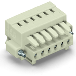 Description: 1-CONDUCTOR FEMALE PLUG; 100% PR, Features: Mating Flange, Retention Latches (Non-Wire Side), Packaging: Box, Color: Gray, Mounting Type: Free Hanging (In-Line), Number of Positions: 8, Pitch: 0.138" (3.50mm), Type: Plug, Female Sockets, Operating Temperature: -60°C ~ 100°C, Termination Style: Screwless - Push-In Spring, Current - IEC: 10A, Number of Levels: 1, Wire Gauge or Range - AWG: 14-28 AWG, Wire Gauge or Range - mm²: 0.08-1.5mm², Positions Per Level: 8, Plug Wire Entry: 180°, Contact Mating Finish: Tin, Current - UL: 10 A, Voltage - IEC: 320 V, Voltage - UL: 300 V.