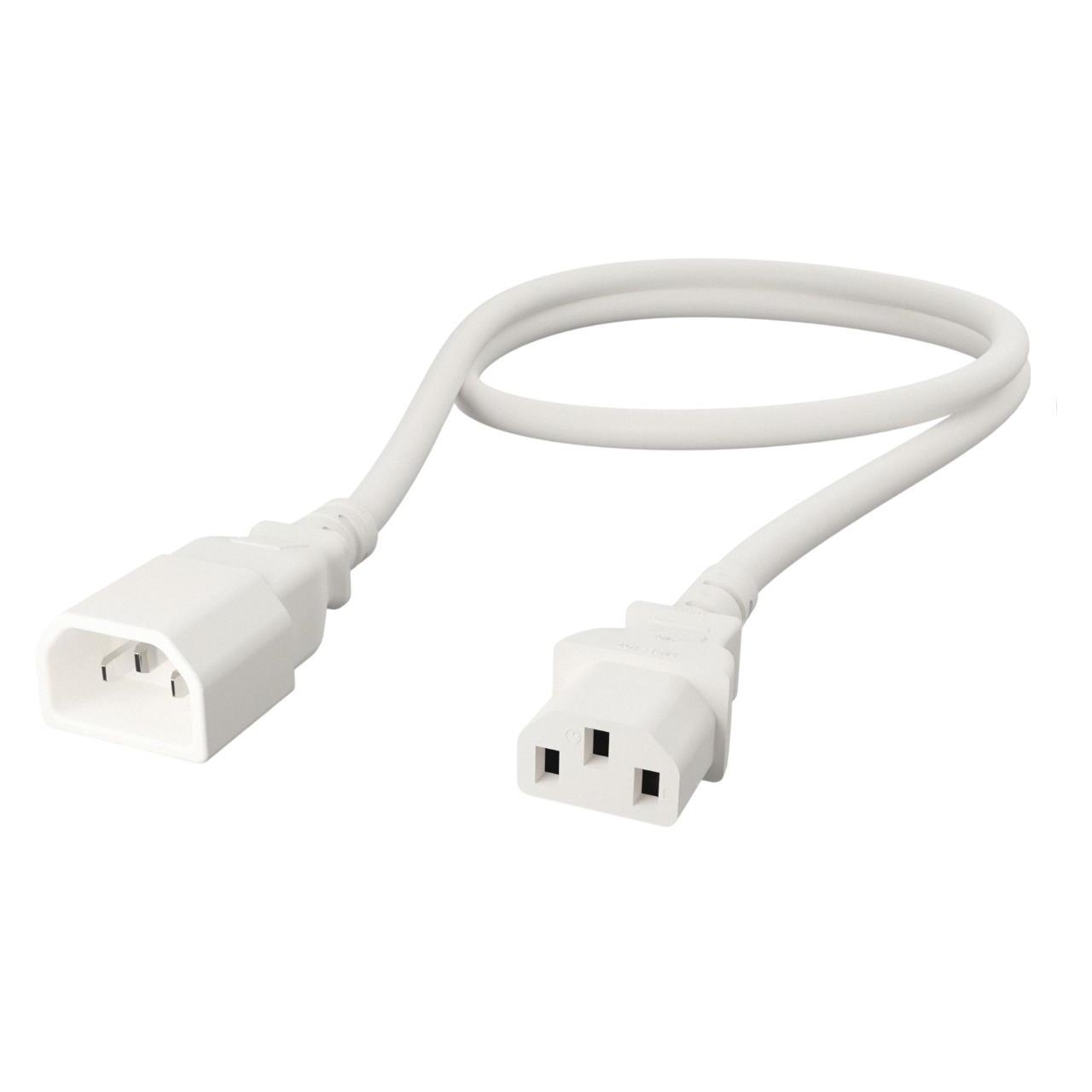 Description: EXTEN PWR CORD C14/C13 14AWG 4', Packaging: Retail Package, Color: White, Voltage Rating: 250V, Current Rating (Amps): 15A, Length: 4.00' (1.22m), Wire Gauge: 14 AWG, Shielding: Unshielded, Style: Male Pins (Blades) to Female Sockets (Slots), Operating Temperature: -20°C ~ 105°C, Number of Conductors: 3, Cord Type: SJT, 1st Connector: IEC 320-C14, 2nd Connector: IEC 320-C13, Approval Agency Marking: CSA, cUL, UL, Approved Countries: Canada, United States.
