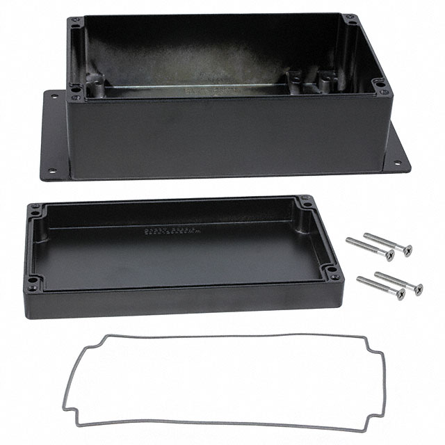 Description: BOX ALUM BLACK 7.87"L X 4.27"W, Packaging: Bulk, Features: Mounting Flange, PCB Supports, Watertight, Color: Black, Size / Dimension: 7.870" L x 4.270" W (199.90mm x 108.46mm), Material: Metal, Aluminum, Thickness: 0.070" (1.78mm), Height: 2.950" (74.93mm), Design: Cover Included, Ratings: IP68, NEMA 4X,6,6P,12,13, Container Type: Box, Area (L x W): 33.6in² (217cm²).
