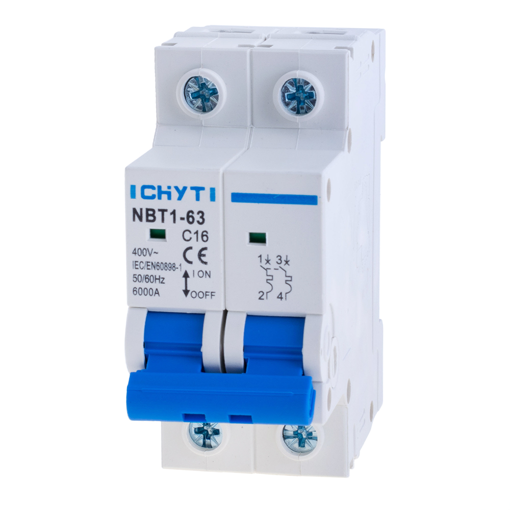 | Автоматичний вимикач змінного струму двополюсний 16A NBT1-63-C16-2P CHYT Код товару: 195949