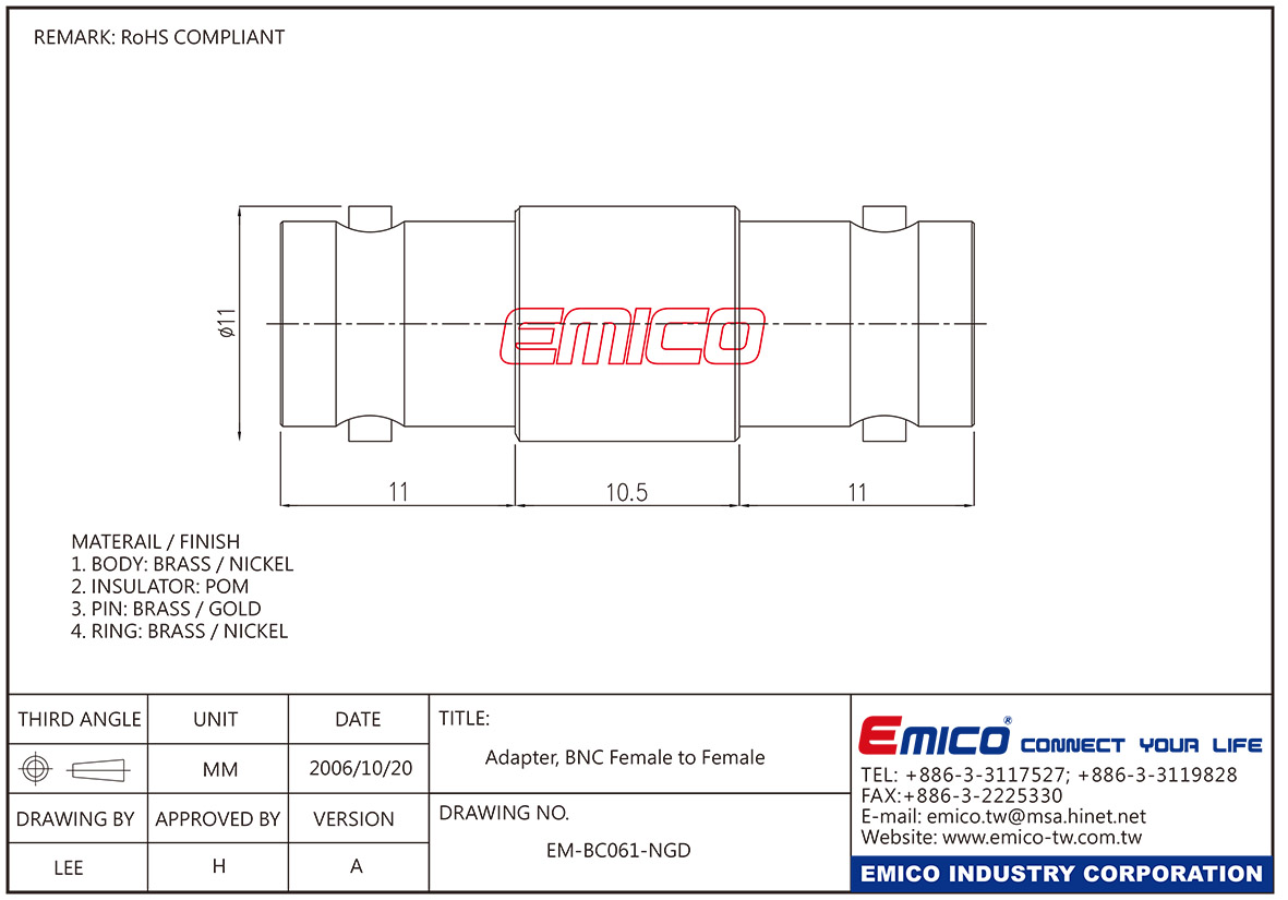 Перехідник BNC-розетка BNC-розетка (EM-BC061-NGD) Код товару: 73829