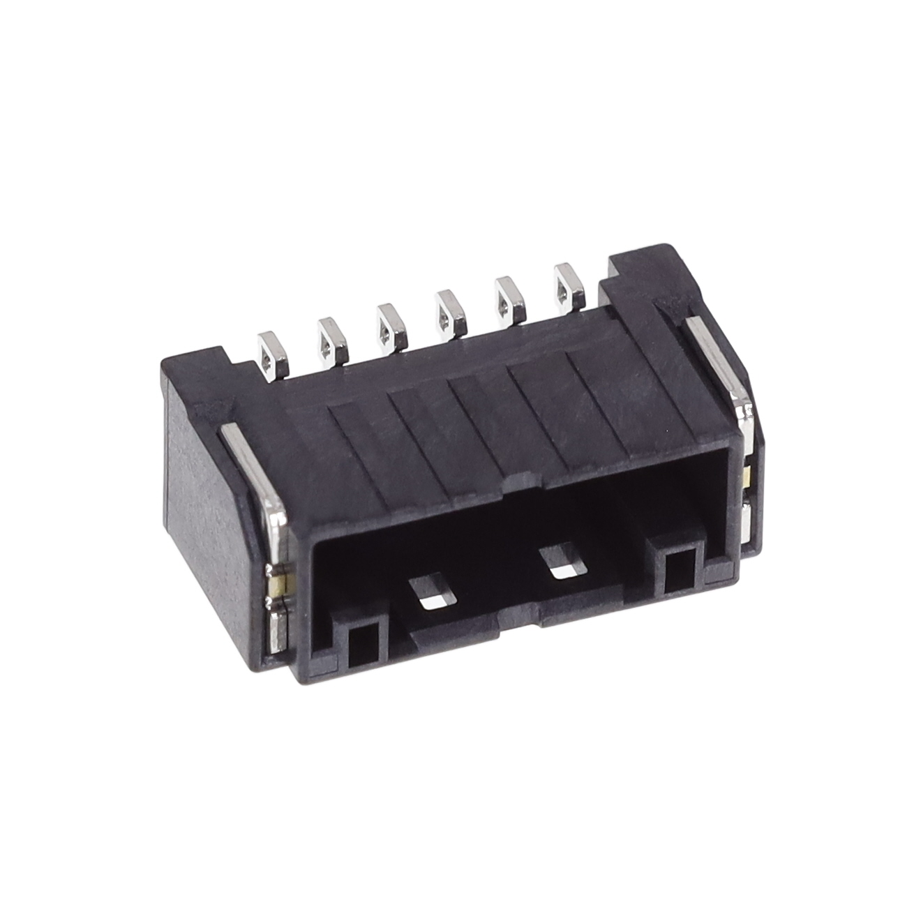 Description: HEADER, 6POS., 2MM PITCH, RIGHT, Features: Pick and Place, Solder Retention, Packaging: Tape & Reel (TR), Connector Type: Header, Voltage Rating: 250VAC/DC, Mounting Type: Surface Mount, Right Angle, Number of Positions: 6, Number of Rows: 1, Style: Board to Cable/Wire, Operating Temperature: -55°C ~ 105°C, Contact Type: Male Pin, Fastening Type: Push-Pull, Number of Positions Loaded: All, Termination: Solder, Material Flammability Rating: UL94 V-0, Contact Material: Brass, Insulation Color: Black, Pitch - Mating: 0.079" (2.00mm), Contact Finish - Mating: Tin, Contact Finish Thickness - Mating: 39.4µin (1.00µm), Contact Finish - Post: Tin, Contact Shape: Square, Insulation Height: 0.260" (6.60mm), Shrouding: Shrouded - 4 Wall, Insulation Material: Liquid Crystal Polymer (LCP).