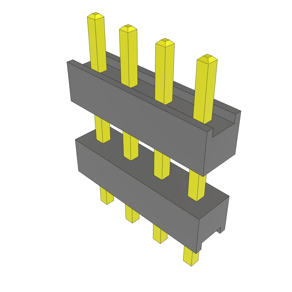 Description: CONN HDR 4POS 0.1 STACK T/H GOLD, Packaging: Bulk, Color: Black, Mounting Type: Through Hole, Pitch: 0.100" (2.54mm), Termination: Solder, Contact Finish - Post (Mating): Gold, Contact Finish Thickness - Post (Mating): 10.0µin (0.25µm), Number of Rows: 1, Number of Positions: 4, Length - Overall Pin: 0.530" (13.462mm), Length - Post (Mating): 0.110" (2.794mm), Length - Stack Height: 0.310" (7.874mm), Length - Tail: 0.110" (2.794mm).