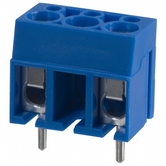 Description: TERM BLK 2P SIDE ENTRY 10MM PCB, Packaging: Bulk, Color: Blue, Mounting Type: Through Hole, Wire Gauge: 14-22 AWG, Pitch: 0.394" (10.00mm), Mating Orientation: Horizontal with Board, Positions Per Level: 2, Wire Termination: Screw - Leaf Spring, Wire Guard, Part Status: Active, Current: 15 A, Number of Levels: 1, Voltage: 300 V.