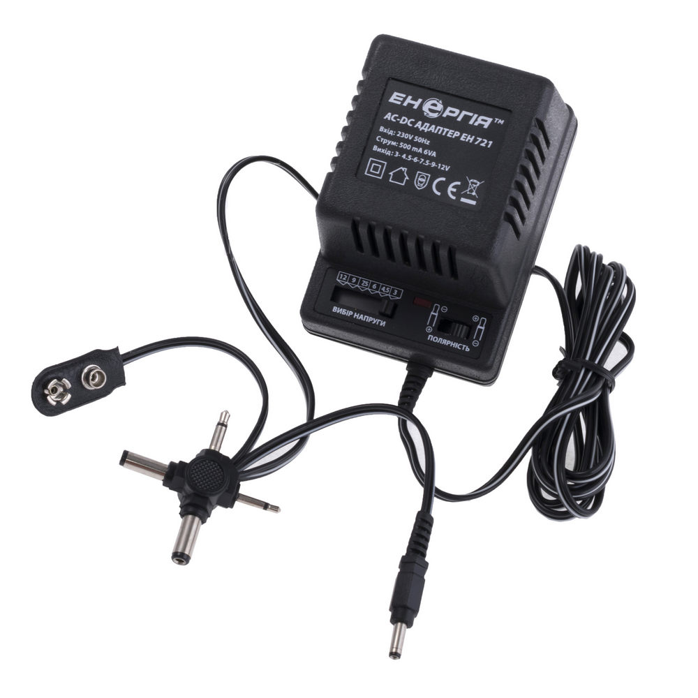 Продукція > Блоки та елементи живлення > AC / DC адаптери > EH-721 500mAh 3/4.5/6/7.5/9/12V (блок живлення універсальний) Енергія
