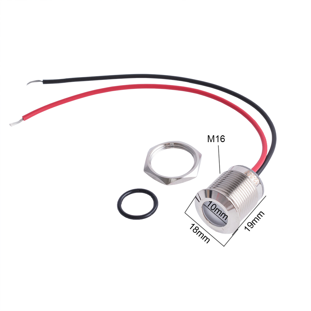 Можливі заміни Індикаторна лампа 16 mm водонепроникна з білим підсвічуванням 12 VDC. Довжина: 19мм