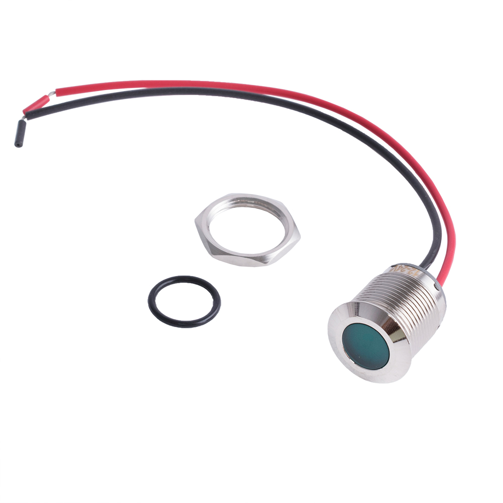 | Індикаторна лампа 16 mm водонепроникна з зеленим підсвічуванням 12 VDC. Довжина 19мм Код товару: 179976