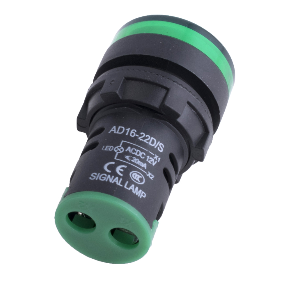 Продукція > Оптоелектроніка > Сигнальні та індикаторні лампи > Індикаторна LED лампа AC / DC 12V зелена (AD16-22D / S, Hord)