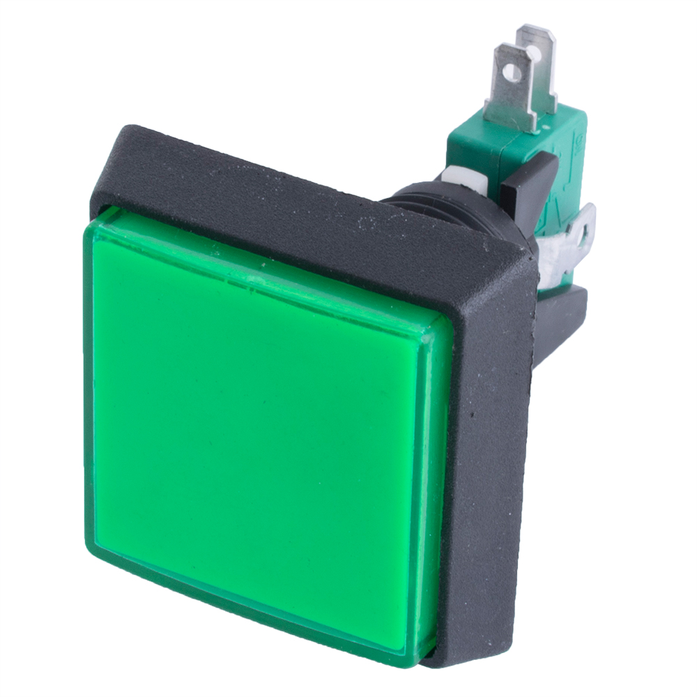 Опис: Кнопка квадратна з підсвічуванням 12V, колір зелений, алгоритм роботи: no(nc)+nc(no). Комутована напруга/струм: 250VAC/5A