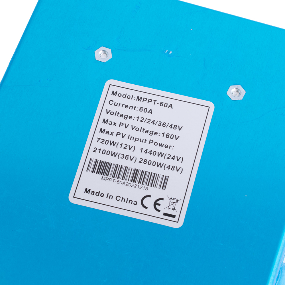Виробник: PowMrОпис: Контролер сонячних батарей у металевому корпусі, що вбудовується. Спосіб заряду: MPPT. Підтримує типи батарей: AGM/GEL/Lithium. РК-екран відображає процес заряду/розряду АКБ. Захист від зворотної полярності сонячної панелі, перезаряджання, функція компенсації температури навколишнього середовища. Напруги АКБ: 12V/24V/36V/48V визначає автоматично. Максимальний струм виходу: 60A. Максимальна потужність сонячної панелі для систем з АКБ: 12V (720W), 24V (1140W), 36V (2100W), 48V (2800W).
