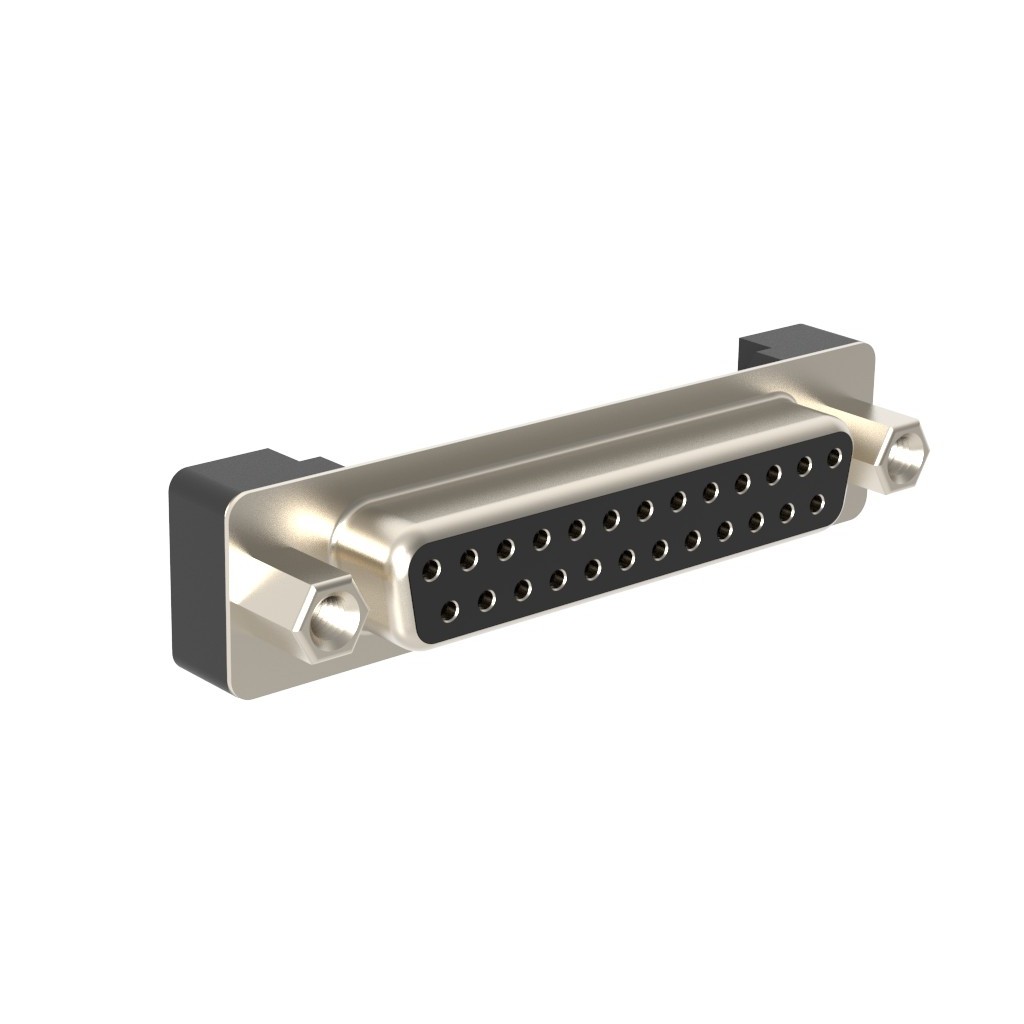 Description: CONN D-SUB RCPT 25POS VERT SLDR, Packaging: Tray, Features: Board Lock, Connector Type: Receptacle, Female Sockets, Contact Finish: Gold, Current Rating (Amps): 5A, Mounting Type: Through Hole, Number of Positions: 25, Number of Rows: 2, Contact Type: Signal, Flange Feature: Mating Side, Female Screwlock (M3), Termination: Solder, Connector Style: D-Sub, Contact Finish Thickness: 30.0µin (0.76µm), Material Flammability Rating: UL94 V-0, Shell Material, Finish: Steel, Nickel Plated, Shell Size, Connector Layout: 3 (DB, B).
