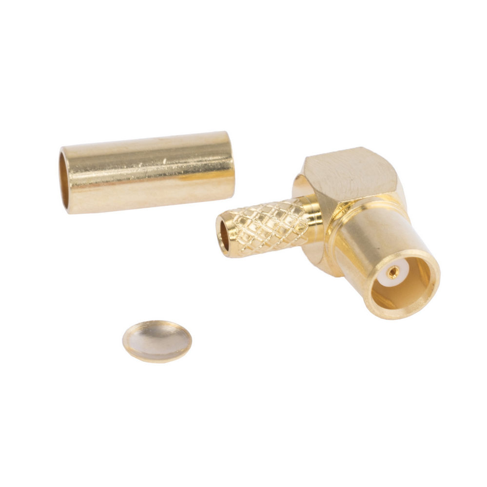 Опис: MCX-розетка кутова під обтиск RG-174, (тефлон, золоч. контакт, золото. корпус)
