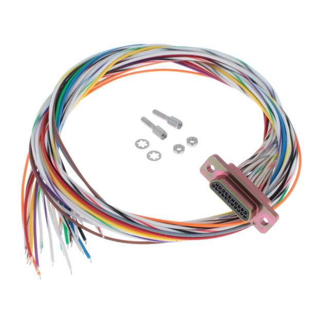 Description: CABLE ASSY D-MIC-D 21P 457.2MM, Packaging: Bag, Contact Finish: Gold, Color: Multiple, Individual, Length: 1.50' (457.20mm), Number of Positions: 21, Type: D-Type, Micro-D, 1st Connector: Plug, Male Pins, 2nd Connector: Individual Wire Leads.