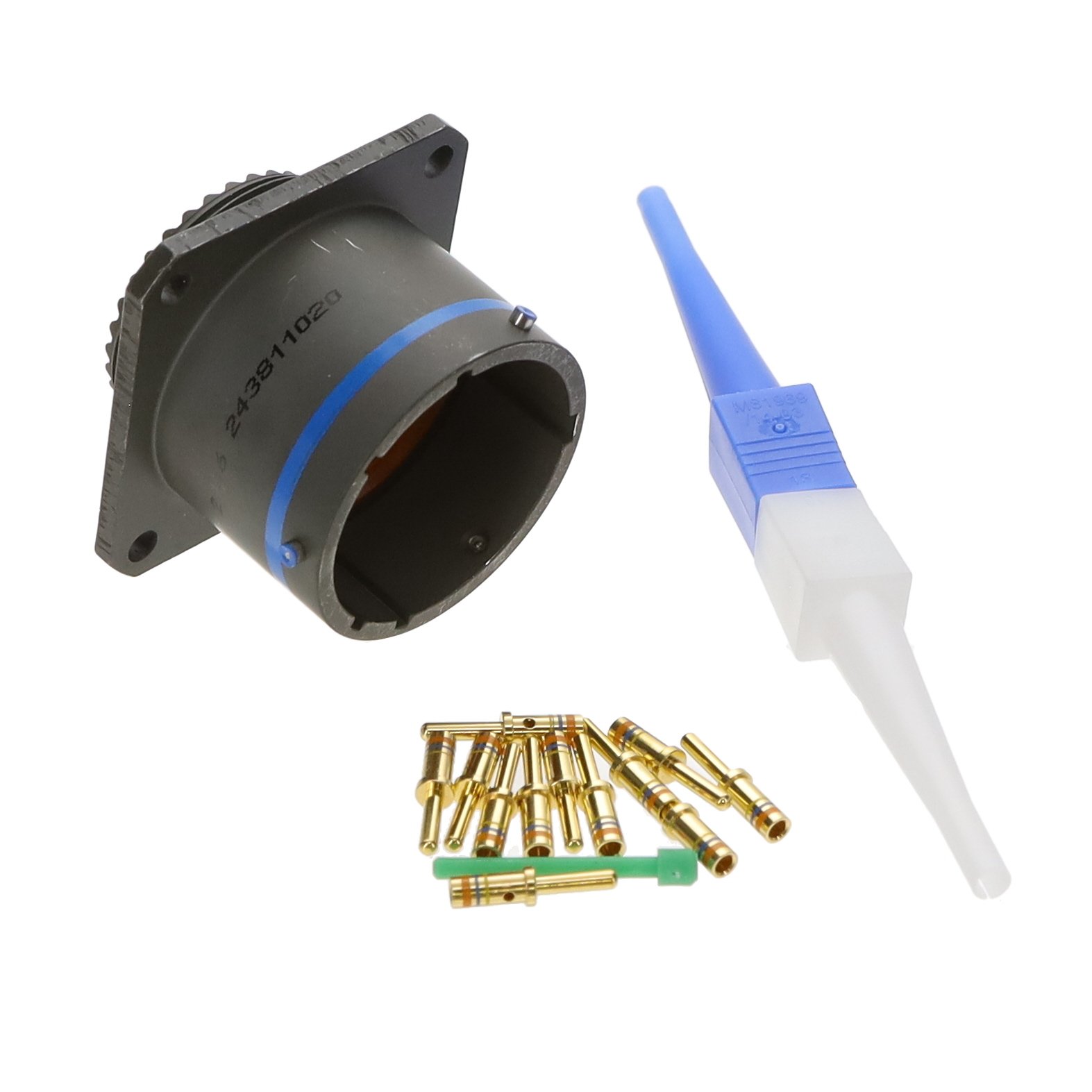 Description: 91-552049-, Packaging: Bulk, Connector Type: Receptacle, Male Pins, Color: Olive Drab, Mounting Type: Panel Mount, Shielding: Unshielded, Number of Positions: 11, Orientation: N (Normal), Shell Size - Insert: 19-11, Operating Temperature: -65°C ~ 175°C, Fastening Type: Bayonet Lock, Termination: Crimp, Ingress Protection: Environment Resistant, Mounting Feature: Flange, Contact Finish - Mating: Gold, Shell Material: Aluminum, Shell Finish: Olive Drab Cadmium over Nickel, Primary Material: Metal.