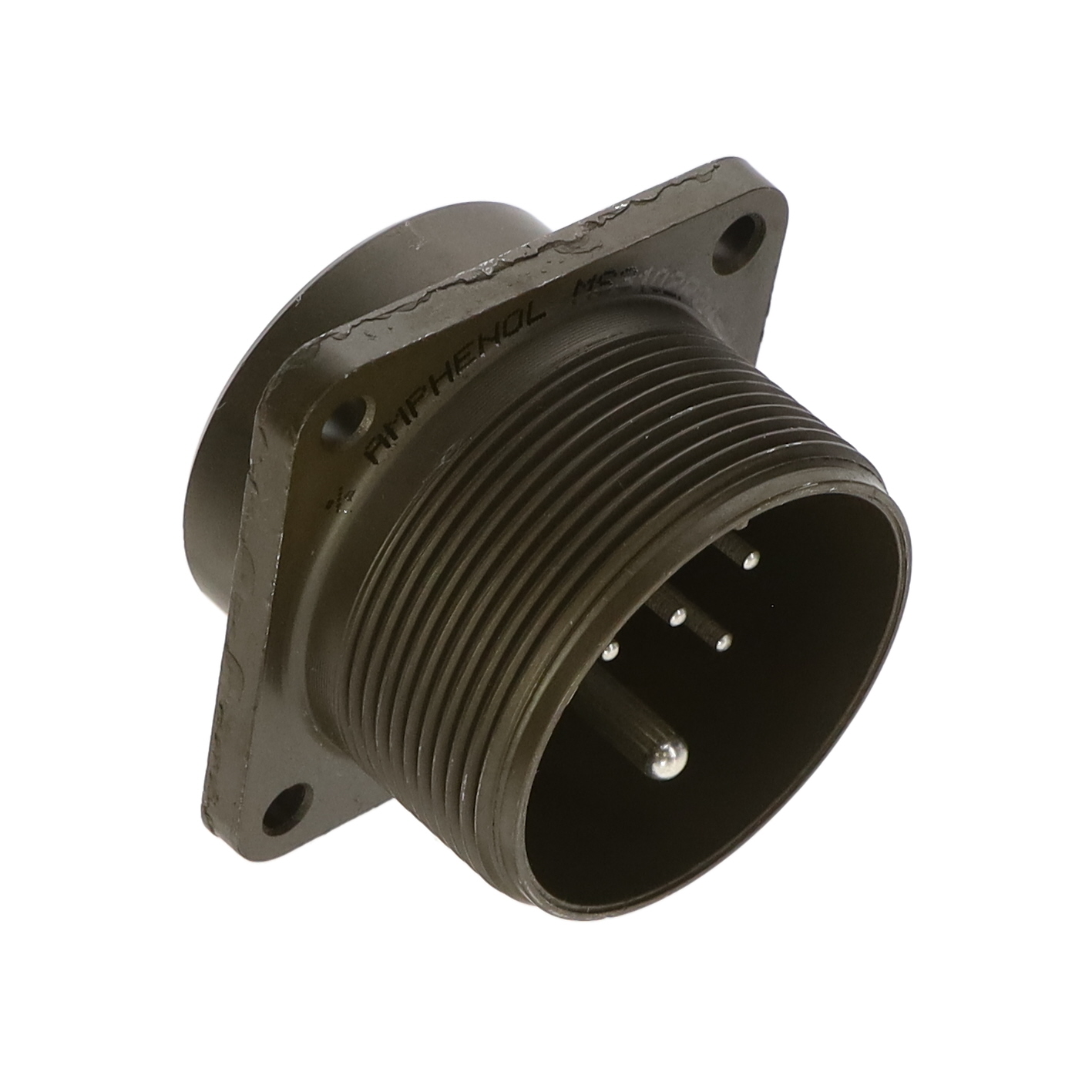Description: MIL-5015 MS/AC THREADED RECEPT, Packaging: Bag, Connector Type: Receptacle, Male Pins, Color: Olive Drab, Voltage Rating: 900VAC, 1.25kVDC, Current Rating (Amps): 13A, 46A, Mounting Type: Panel Mount, Shielding: Unshielded, Number of Positions: 10, Orientation: N (Normal), Shell Size - Insert: 24-21, Operating Temperature: -55°C ~ 125°C, Fastening Type: Threaded, Termination: Solder Cup, Ingress Protection: Environment Resistant, Mounting Feature: Flange, Contact Finish - Mating: Silver, Grade: Military, Shell Material: Aluminum Alloy, Shell Finish: Olive Drab Chromate over Cadmium, Primary Material: Metal, Qualification: MIL-DTL-5015.