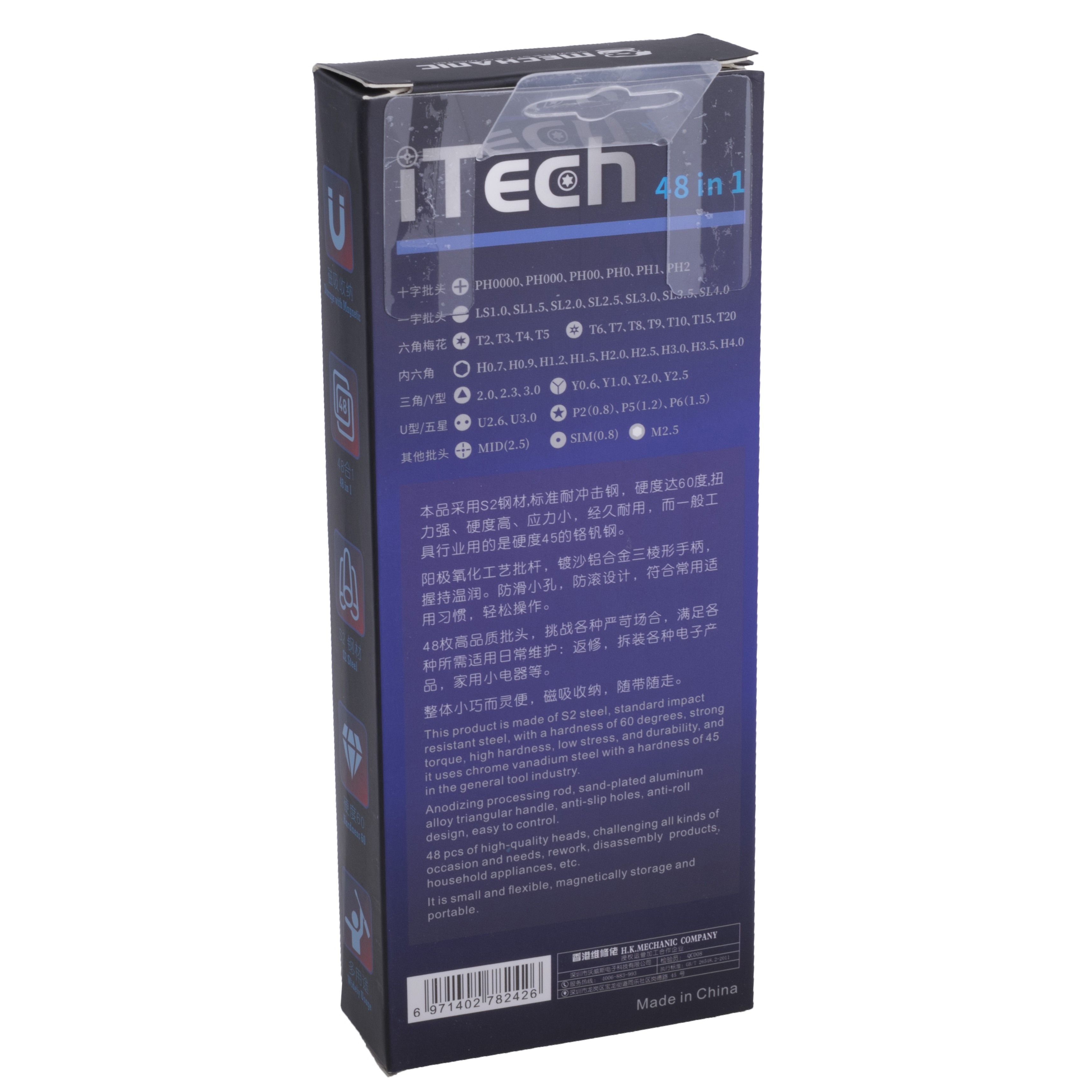 Опис: Набір прецизійних викруток 48 в 1 колір: сірий. Хрестоподібний Phillips: PH0000, PH000, PH00, PH0, PH1, PH2. Плоский: LS1, SL1.5, SL2.0, SL2.5, SL3.0, SL3.5, SL4.0. Зіркоподібний Torx: T2, T3, T4, T5, Зіркоподібний Torx з антивандальним захистом: T6, T7, T8, T9, T10, T15, T20. Шестигранний Hex: H0.7, H0.9, H1.2, H1.5, H2.0, H2.5, H3.0, H3.5, H4.0, Triangle: 2.0, 2.3, 3.0, Spanner: U2 .6, U3.0, Pentalobe: P2 (0.8), P5 (1.2), P6 (1.5). MID 2.5, SIM 0.8, Торцевий: M2.5