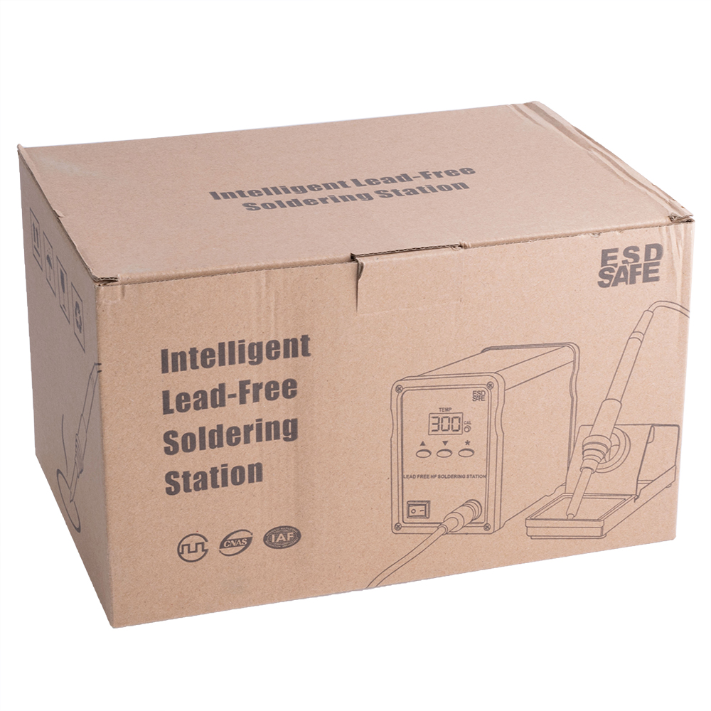 Опис: Паяльна станція для безсвинцевого паяння, температура жала налаштовується в діапазоні 100-450°. Напруга живлення: 220 В. Потужність: 90 Вт. Ручка паяльника: пластикова з гумовою вставкою. Відображення температури на семисегментному дисплеї. Жало: 900H. Антистатичне виконання. Нагрівач: ніхромовий. Розміри: 150x98x134мм